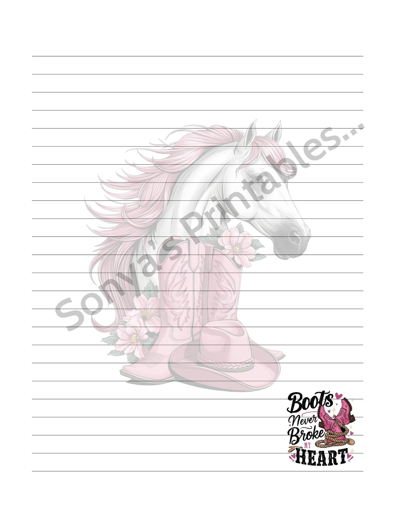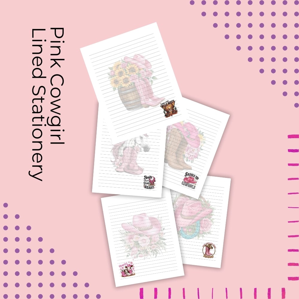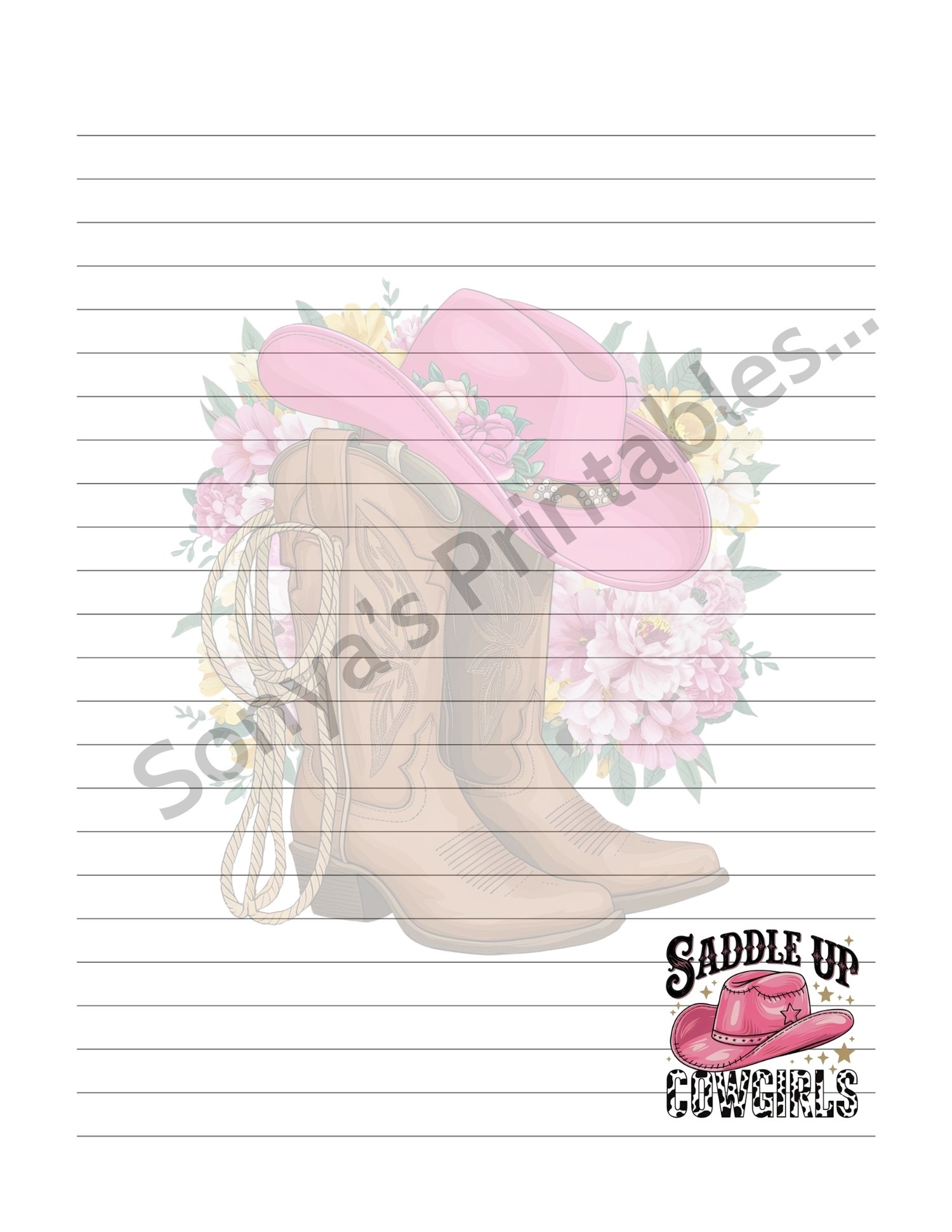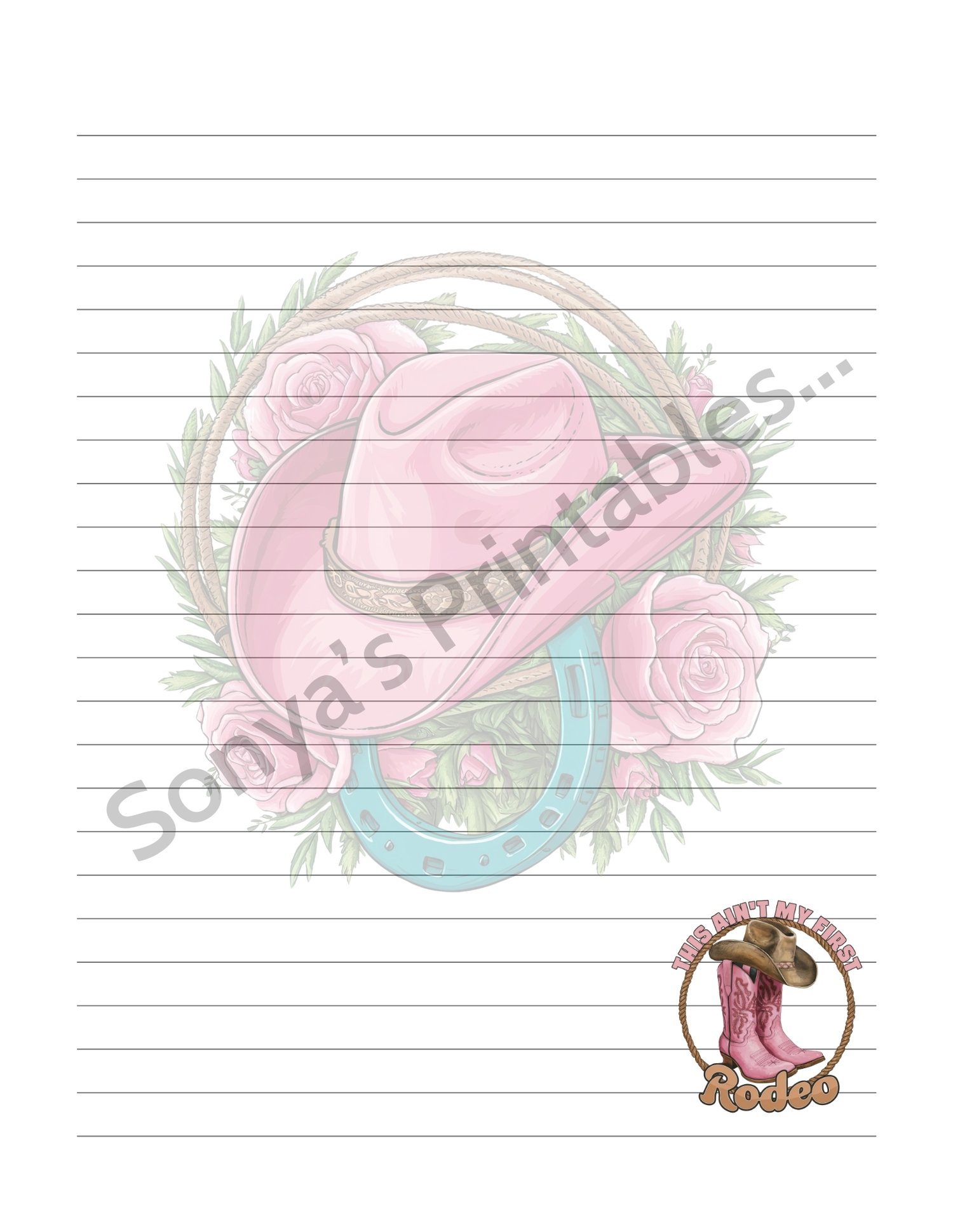 Pink Cowgirl Lined Stationery | Cowgirl Lined Notepaper | Pink Cowgirl Lined Writing Paper | Cowgirl Lined Penpal Paper