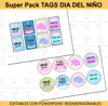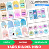 Kit Imprimible Tags Dia Del Niño Editables + Fondos
