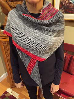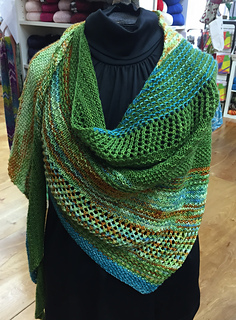 Quindici is an interesting and relaxing boomerang shawl that consists of 15 segments (quindici is Italian for 15), with textured, seed, slipped and lattice stitches. Each segment is a memory souvenir from a special trip to Italy with my daughter.