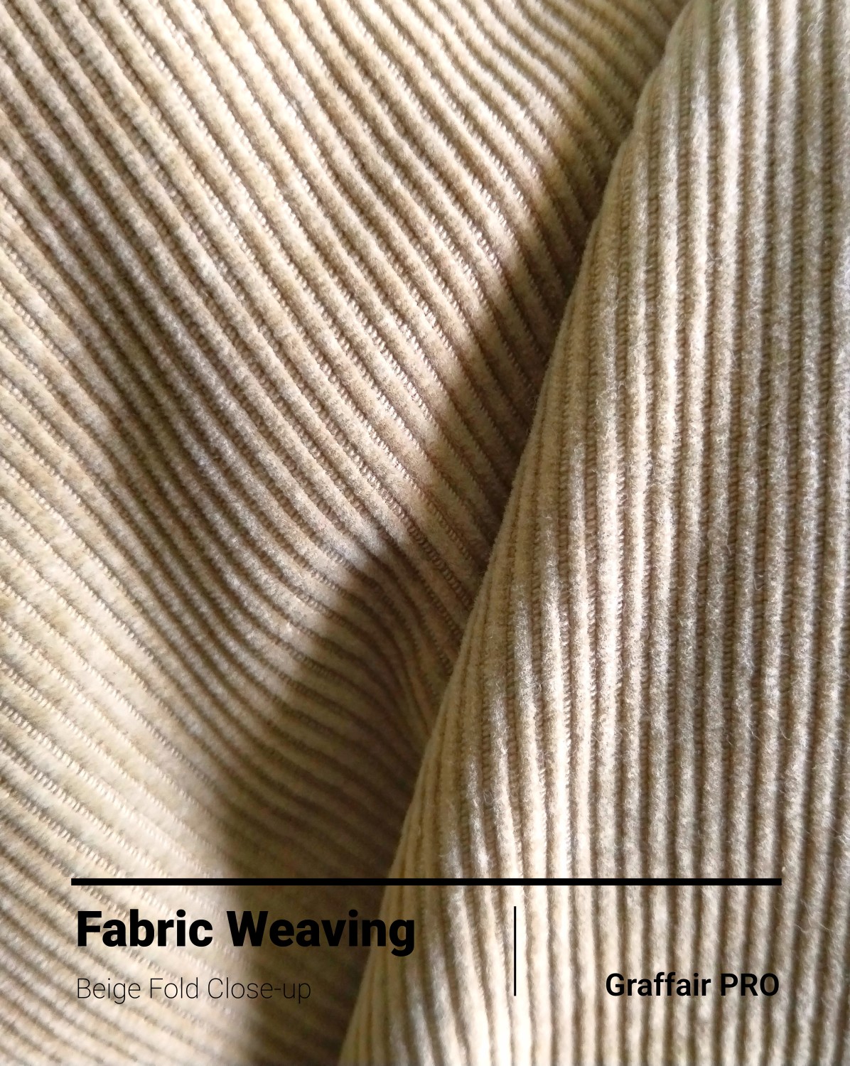 Fabric Weaving: A photograph of a beige folded fabric weaving, shaping smooth striped shades.