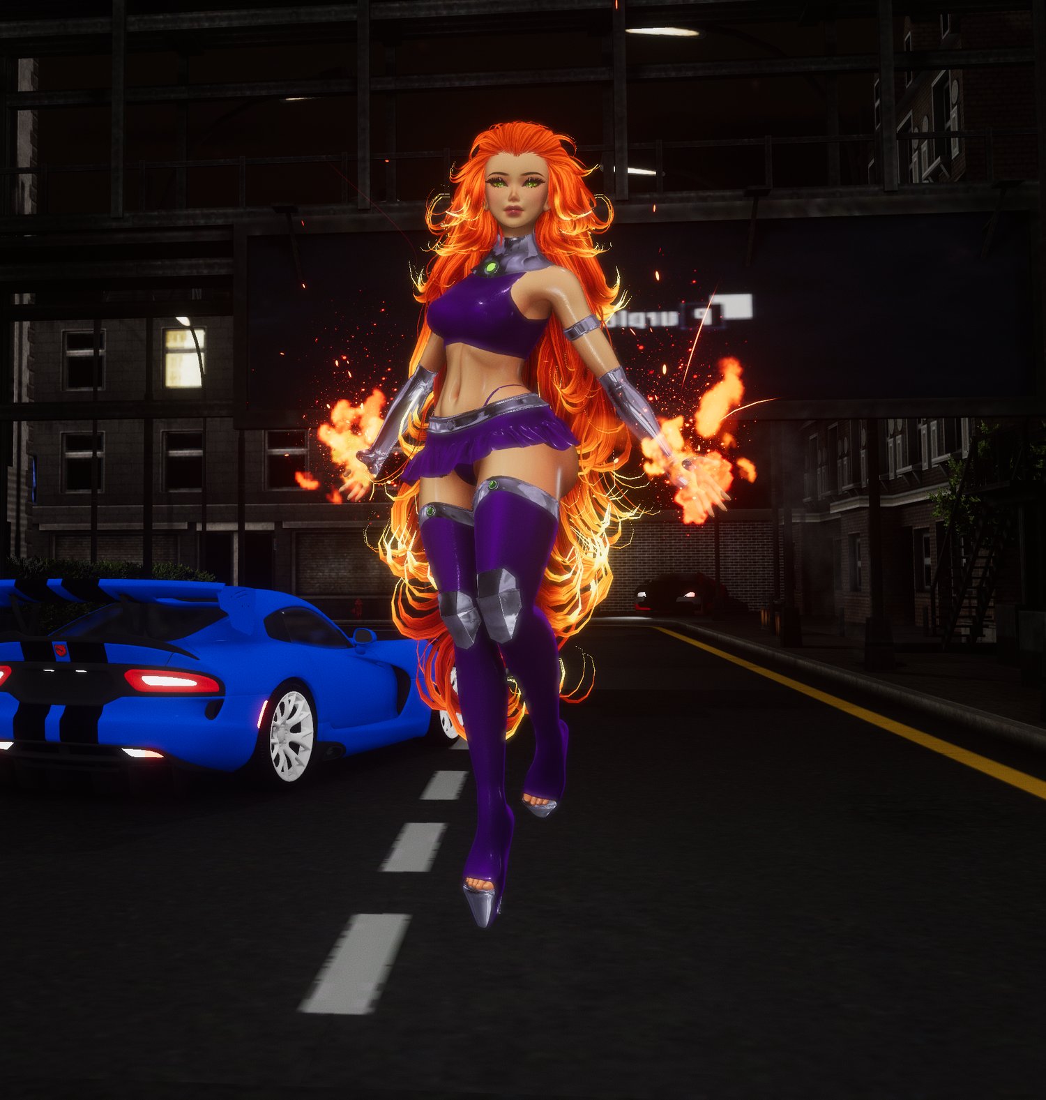 ANYWAYS these avatars are packed full of vfx, like Starfire's fire aura, Ravens dark shield and Black Canary's canary cry and much more. These are the perfect cosplay avatars. And there is even a mixture of Raven & Starfire or as I call her Project Ravenfire. I turly hope you will enjoy using this avatar and I hope you use her on Halloween or at a vrchat con or costume party. Or even a dancing event. This avatar is perfect for any occasion. And she does have some casual looks as well for those that want to keep their super hero identity on the downlow.