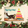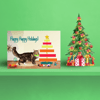 This is an adorable Christmas Holiday card that features a fancy Maine Coon cat enjoying his presents!