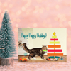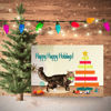 Christmas Holiday Card! Retro/midcentury modern with brown Maine Coon Cat! Instant download w/ unlimited uses! Envelope template included.