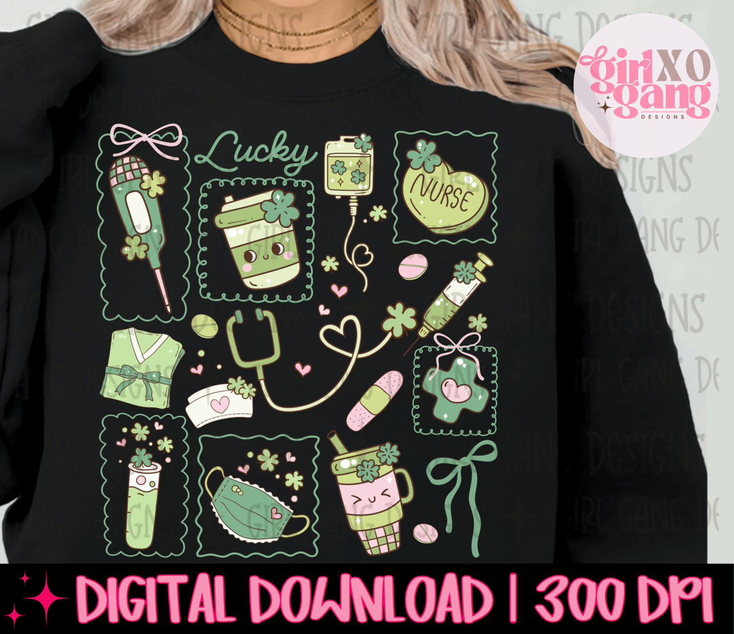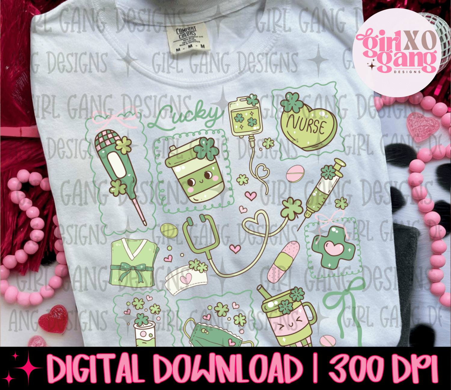 Lucky nurse png, coquette frames st Patrick retro nurse design