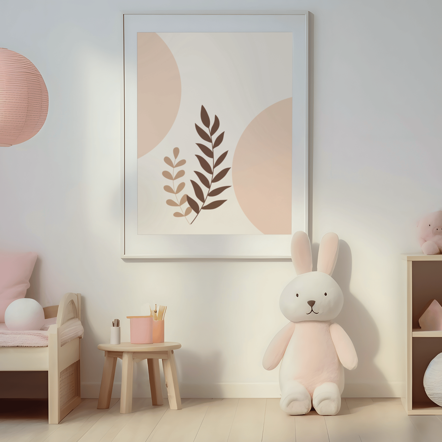 Featuring soft beige tones, minimalist botanical leaves, and a gentle modern aesthetic, this artwork is perfect for nursery rooms, baby rooms, toddler spaces, and kids bedrooms.