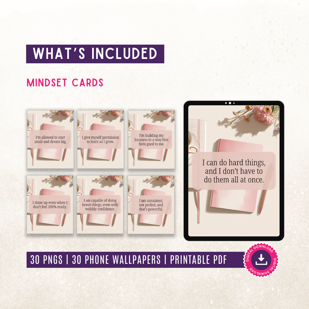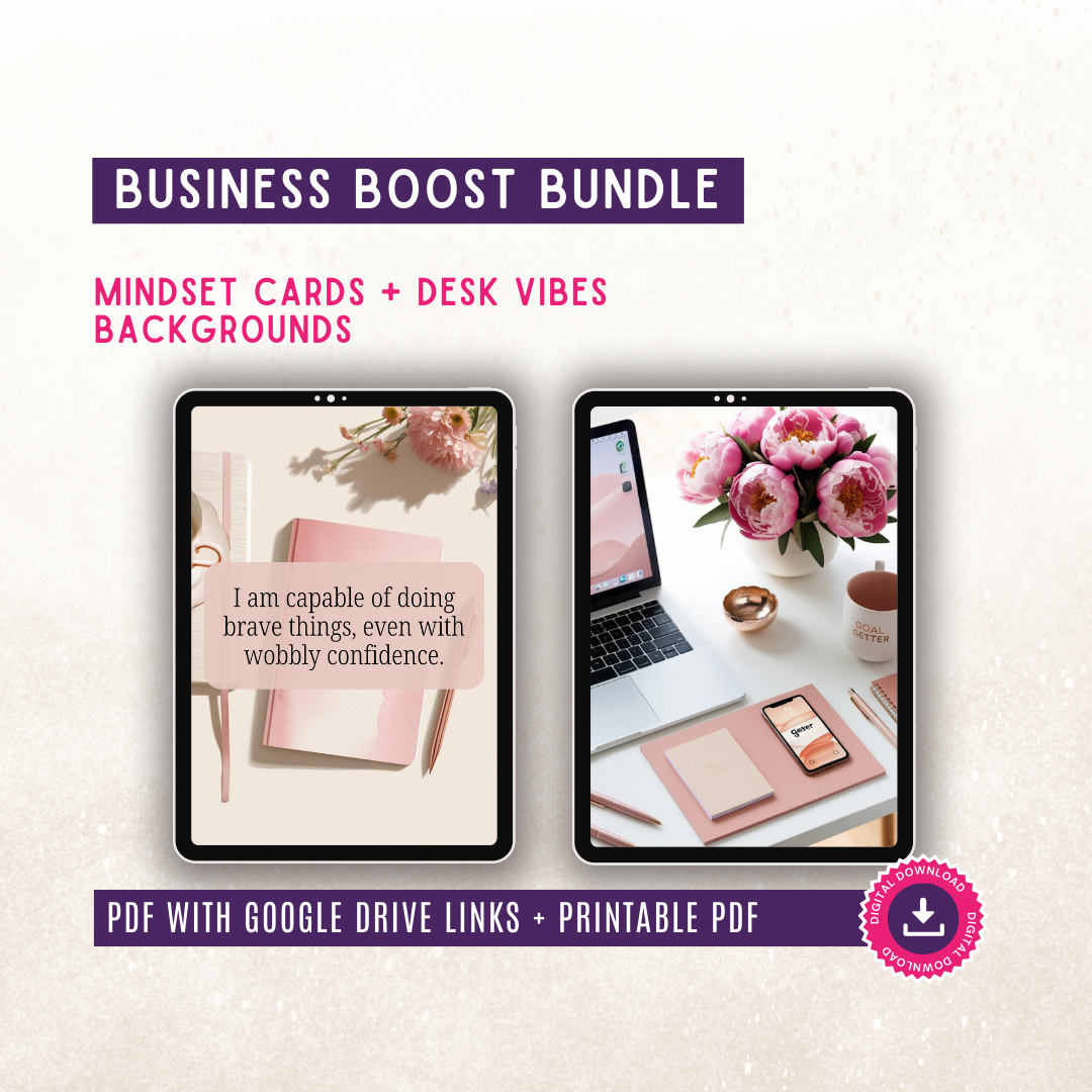 Business Boost Bundle – Mindset Cards + Desk Vibes Backgrounds
