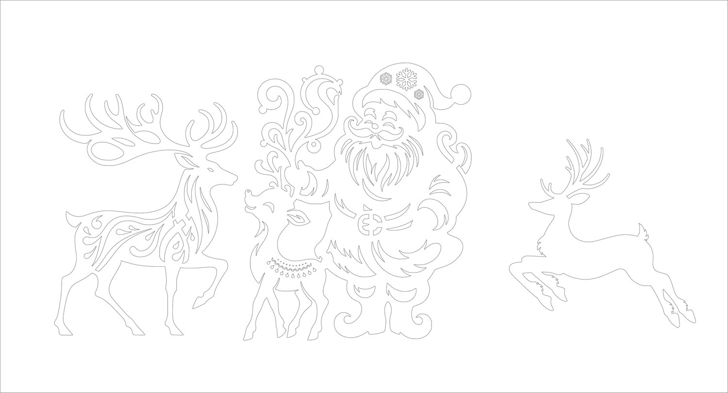 Deer with Baby Deer and santa claus | Festive Digital Design for CNC & Laser Cutting