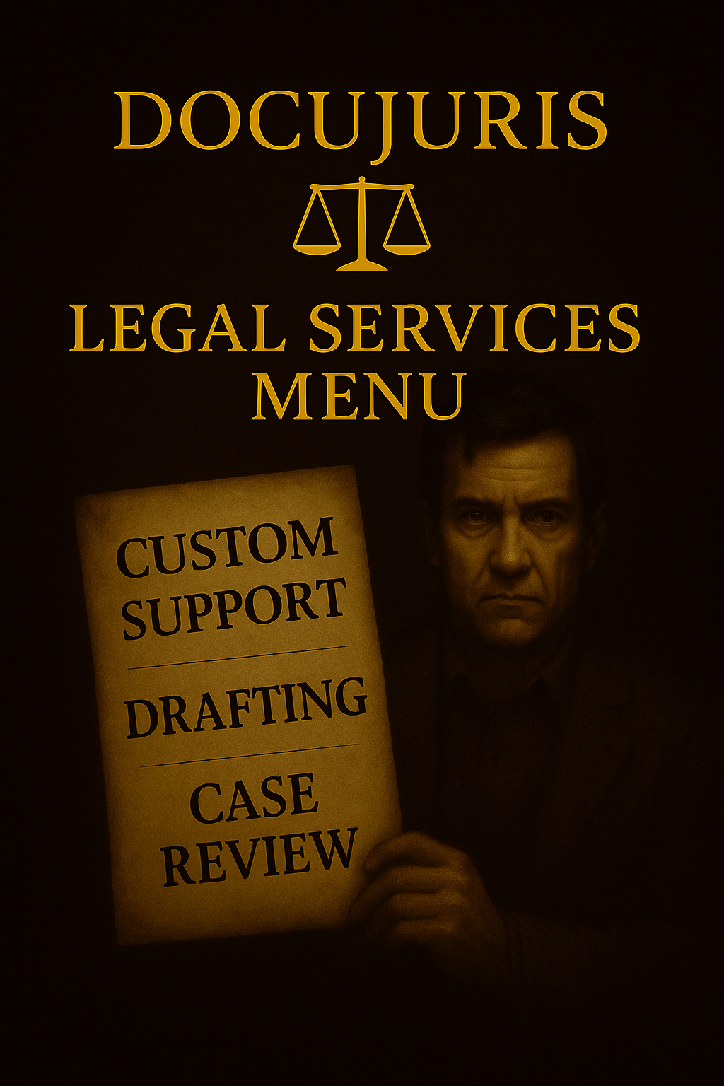 DocuJuris Legal Services Menu (Custom Support, Drafting & Case Review Options)