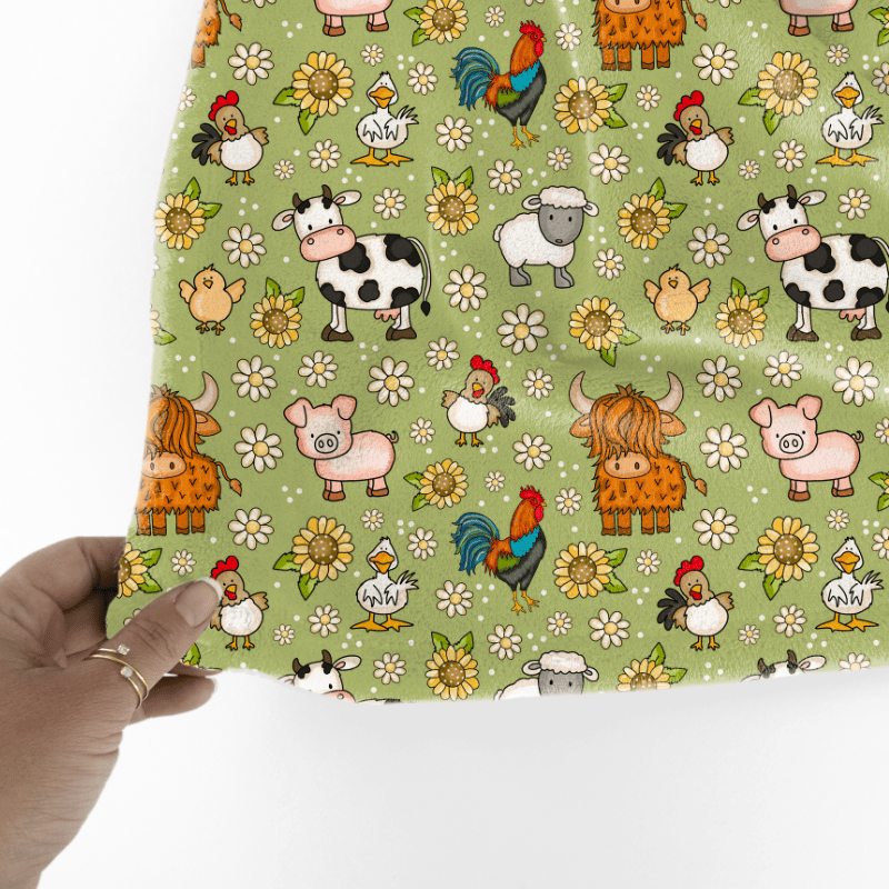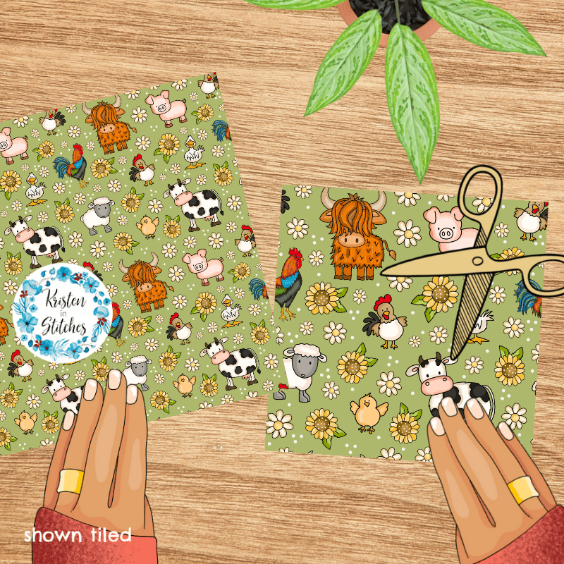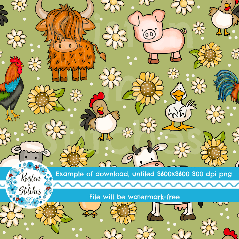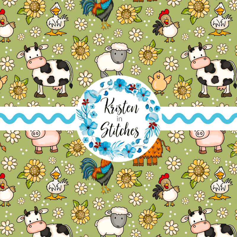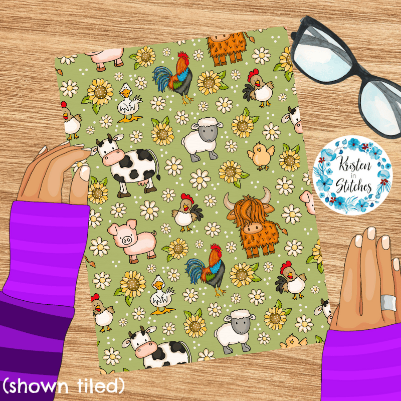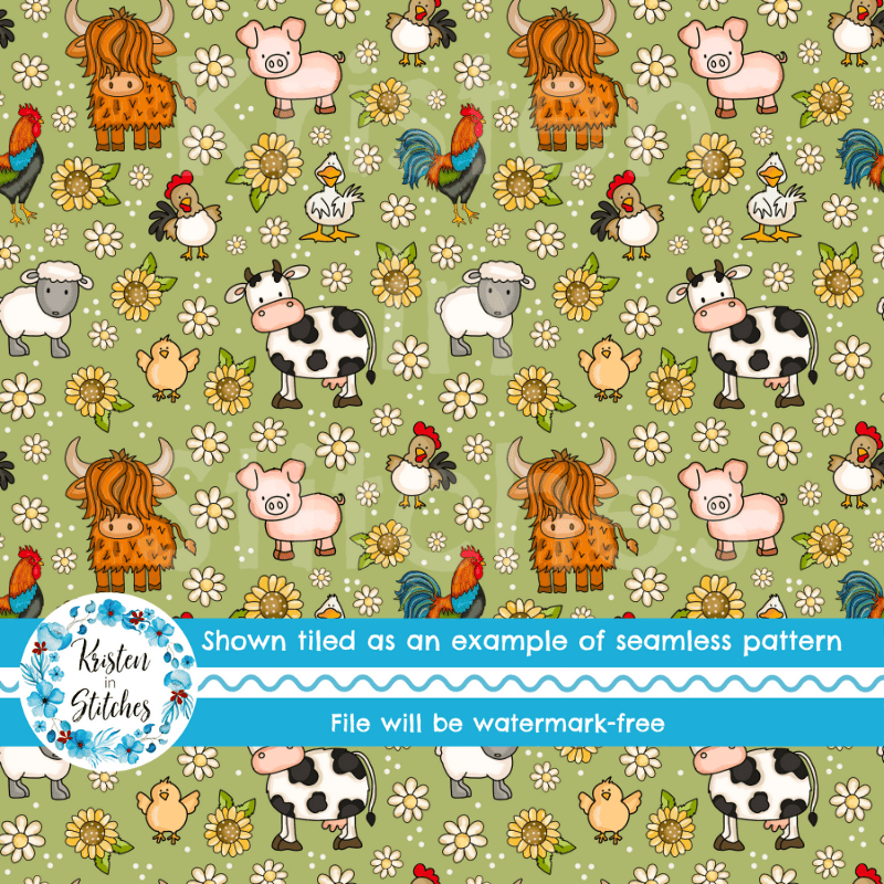 Farm Animals Seamless Pattern, Nursery Floral, Green