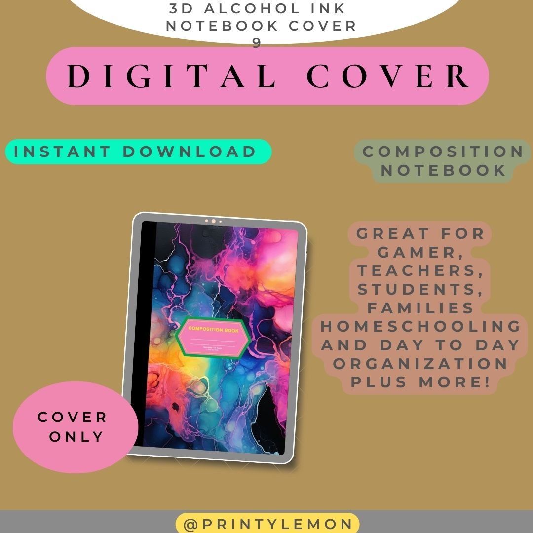 9 Alcohol Ink 3D | Digital Cover Premium | Notebook Cover | GoodNotes | Composition Notebook | Printable