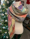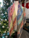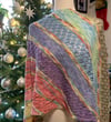 Joyful is designed to use a 12 day fingering weight mini skein countdown calendar with a coordinating full sized skein to create a wrap that is perfectly light and airy over your shoulders or warm and cozy scrunched up around your neck.