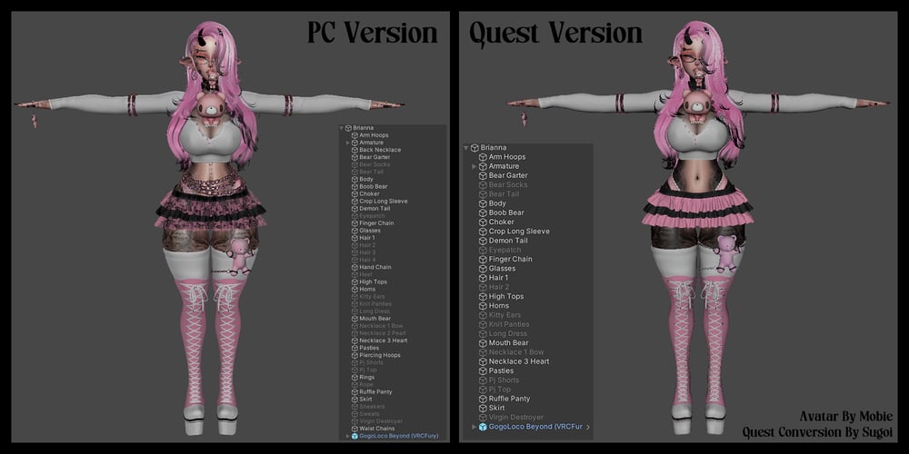 Accessories: Arm Bands, Bow Choker, Heart Necklace, Boob Bear, Bear Garter, Finger Chain, Face Piercings, Body Piercings