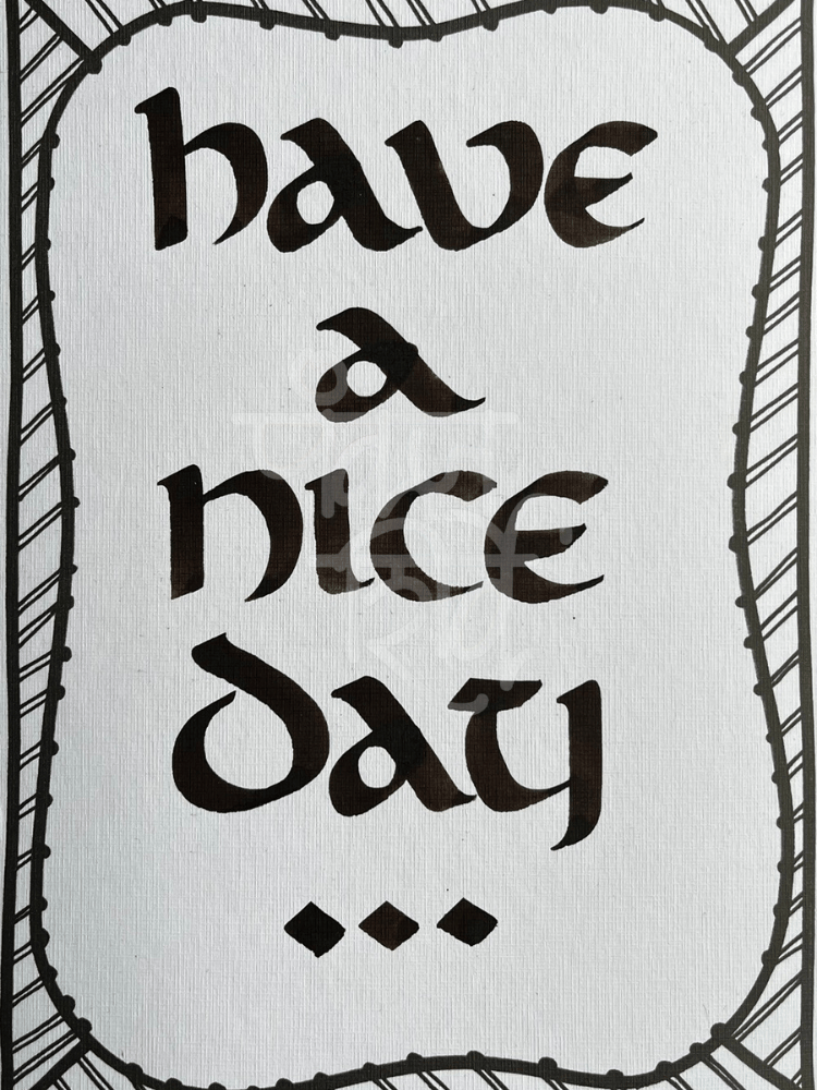 Artwork 'Have a Nice Day' in Handmade Uncial Calligraphy on Canvas Paper