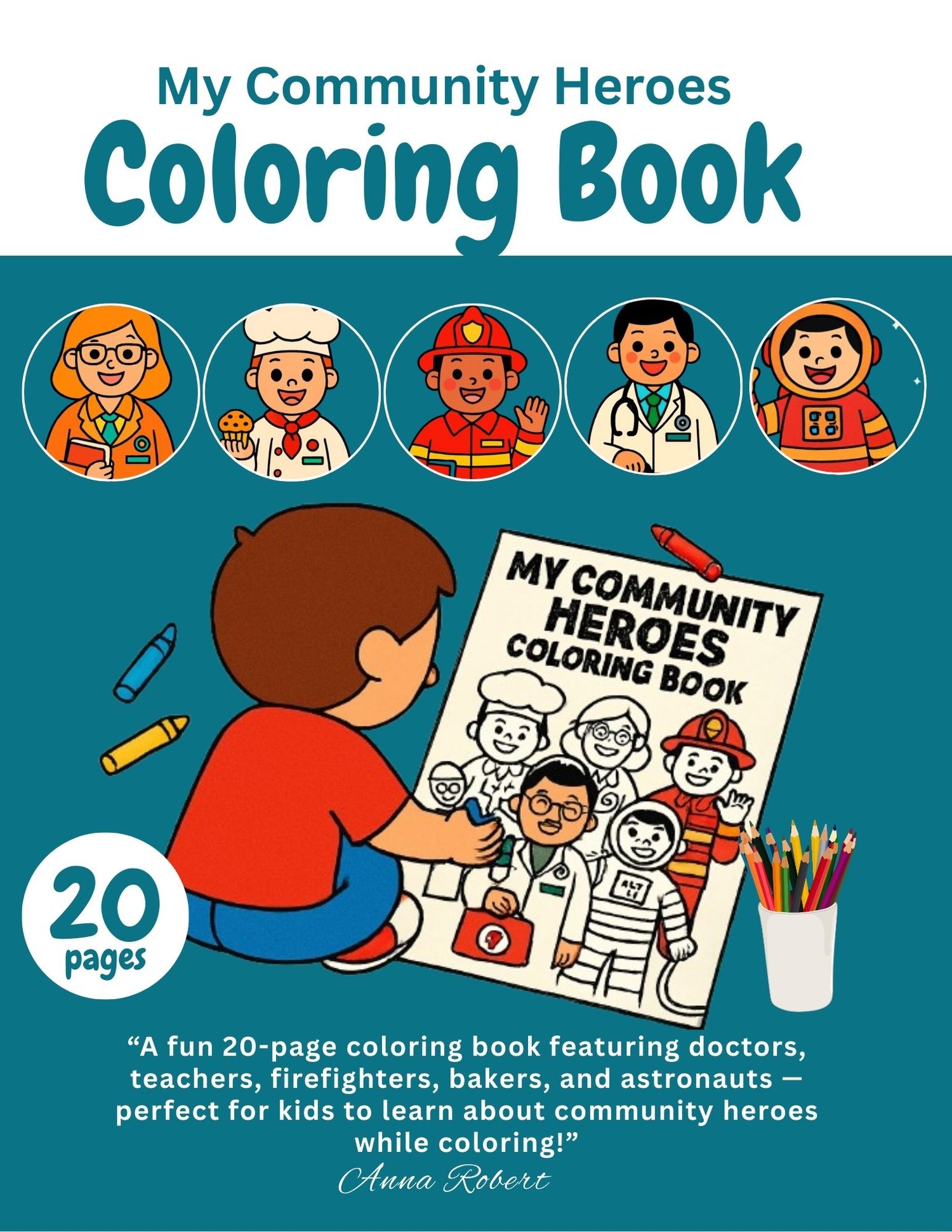 Celebrate the everyday heroes in our community with this 20-page! Designed for kids ages 3–8, this book introduces little learners to inspiring jobs and professions in a fun and creative way.