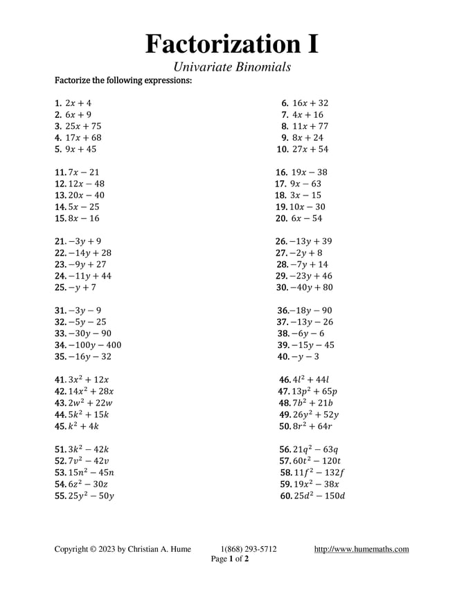 Factorization I - Question set to practice.