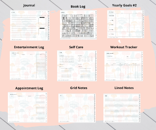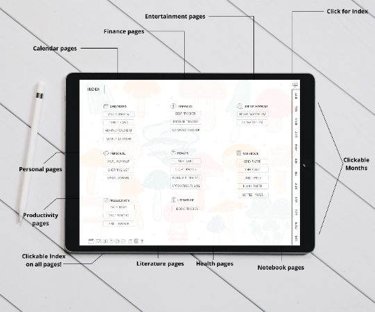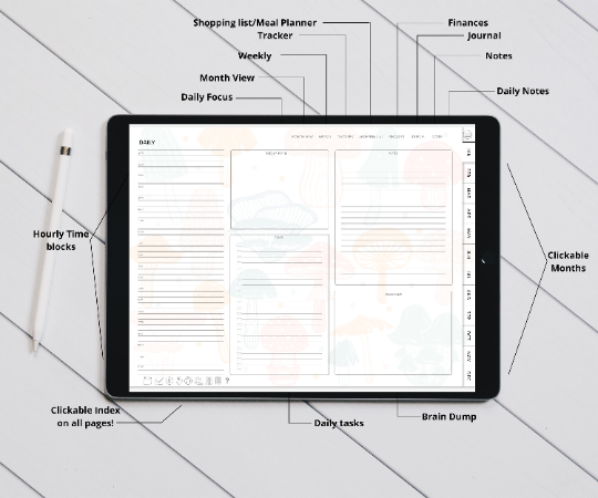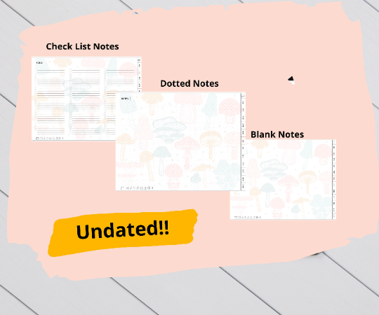 Mushroom theme Blank Undated Digital Planner w/ Hyper Links. Instant Download!