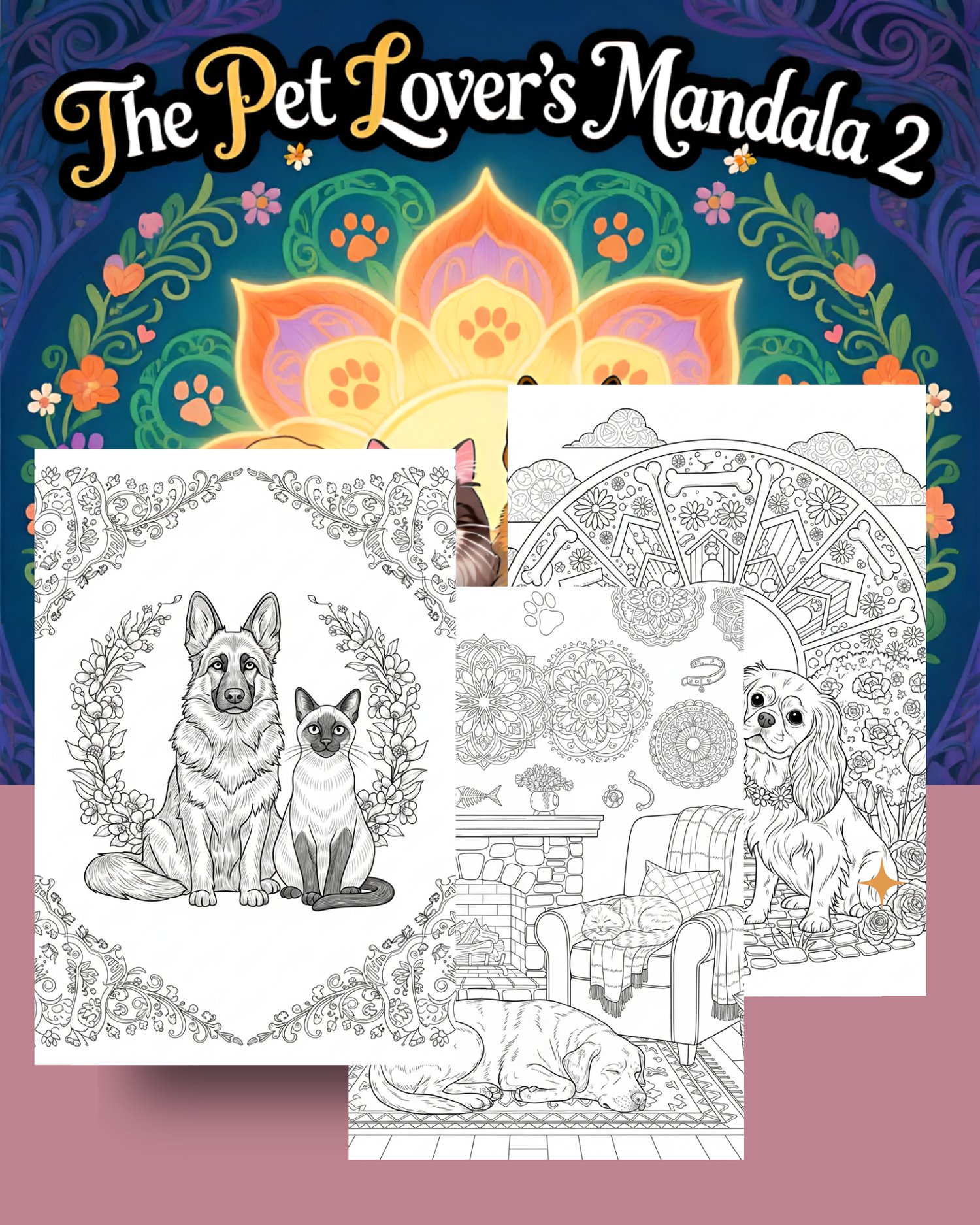 'The Pet Lover's Mandala 2' adult coloring book invites you on a soulful journey to honor that unique connection through the calming practice of coloring.