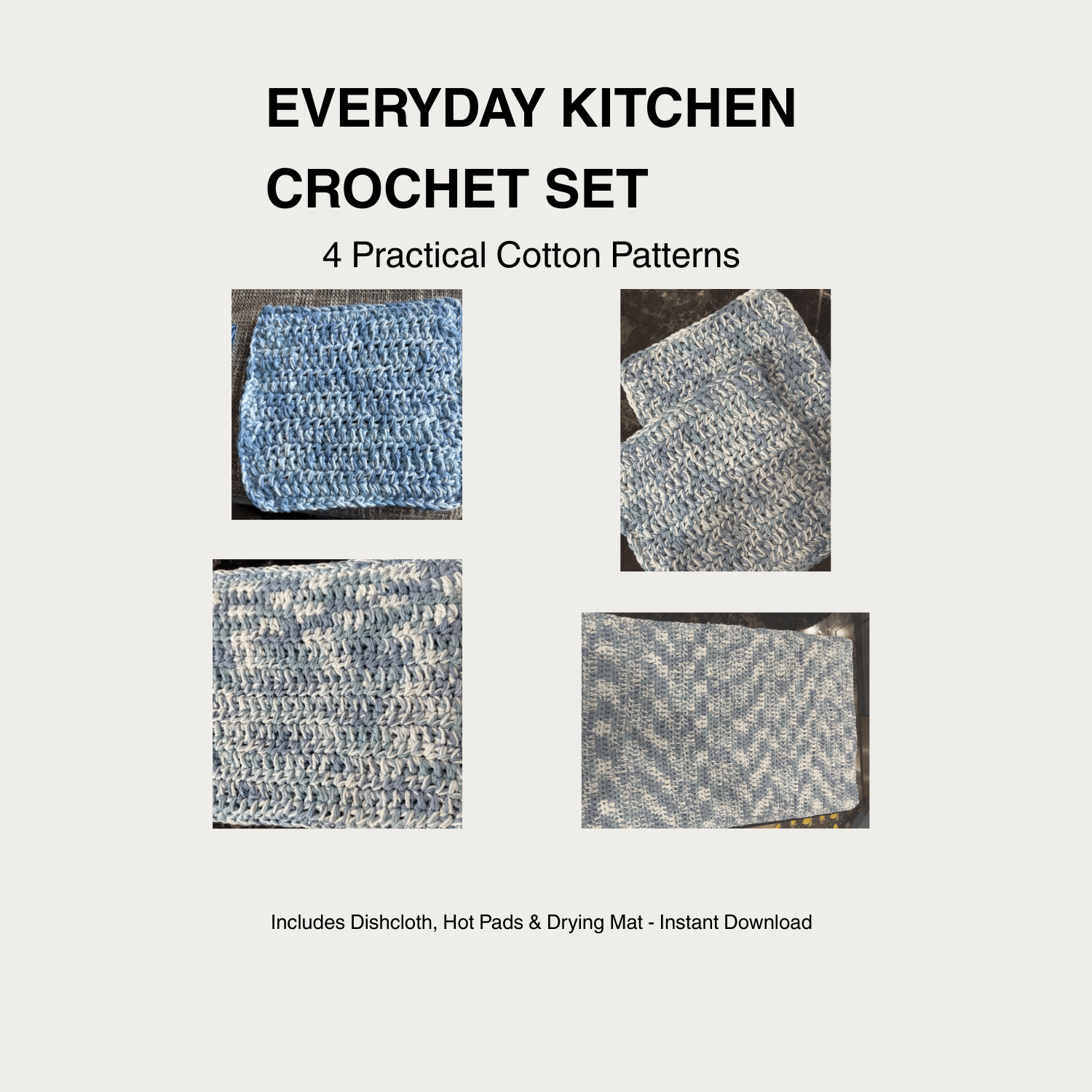 This bundle includes four practical crochet patterns designed for real kitchen use.