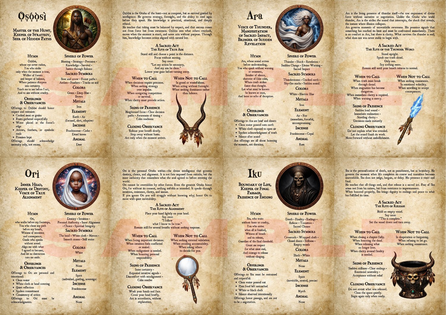 This volume moves through maternal waters, sacred forests, thunder, inner destiny, death, fire, rhythm, and sworn truth. Each Orisha presented with reverence, clarity, and ritual depth. Inside, you will find hymns, sacred acts, offerings, signs of presence, and guidance on when (and when not) to call.