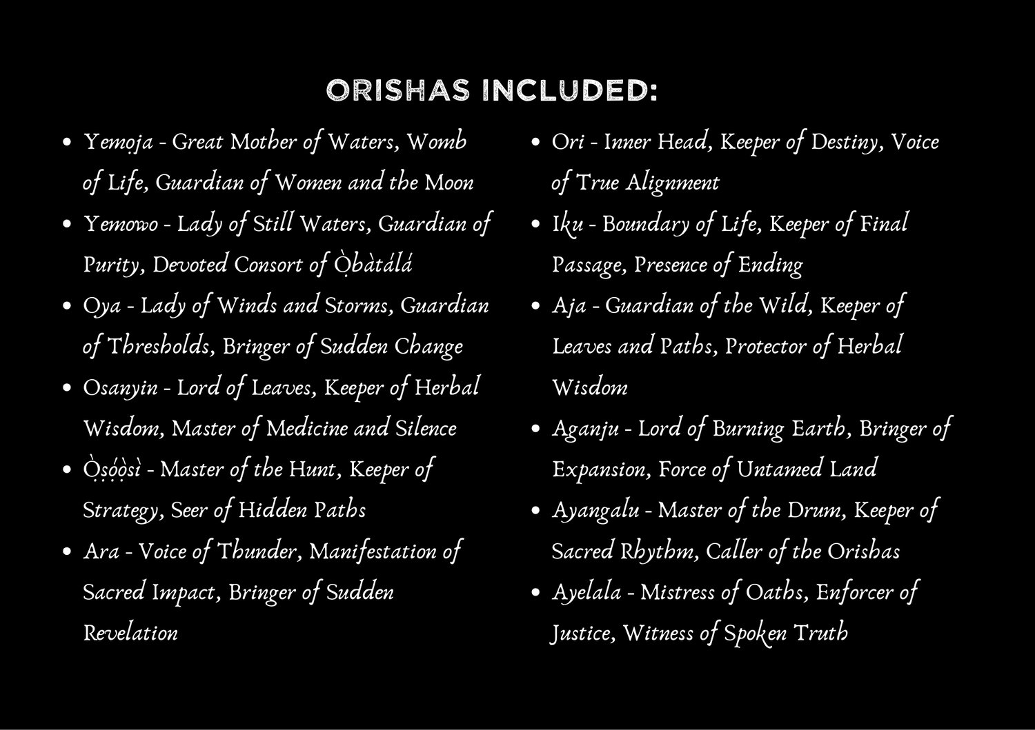 Orishas Included: