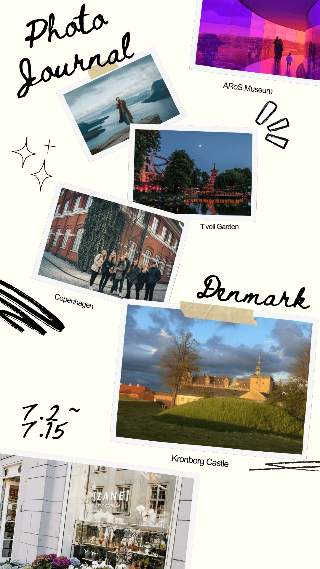 This modern, customizable template lets you showcase photos, add captions, and highlight your favorite travel moments with creative doodles and dynamic layouts.