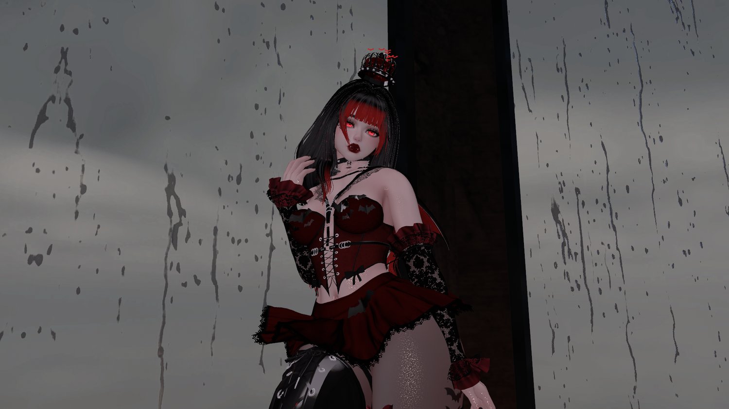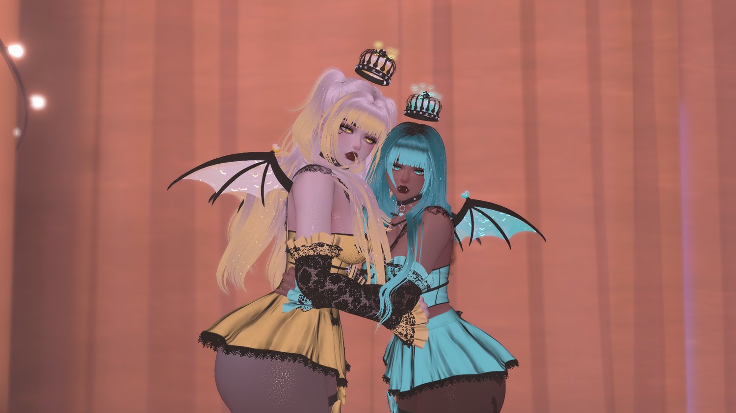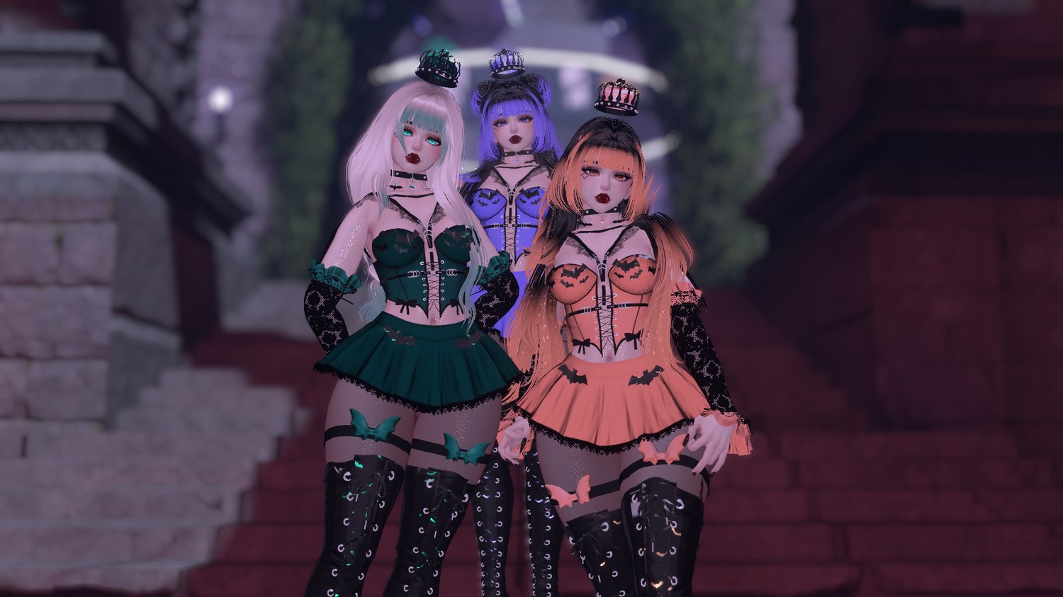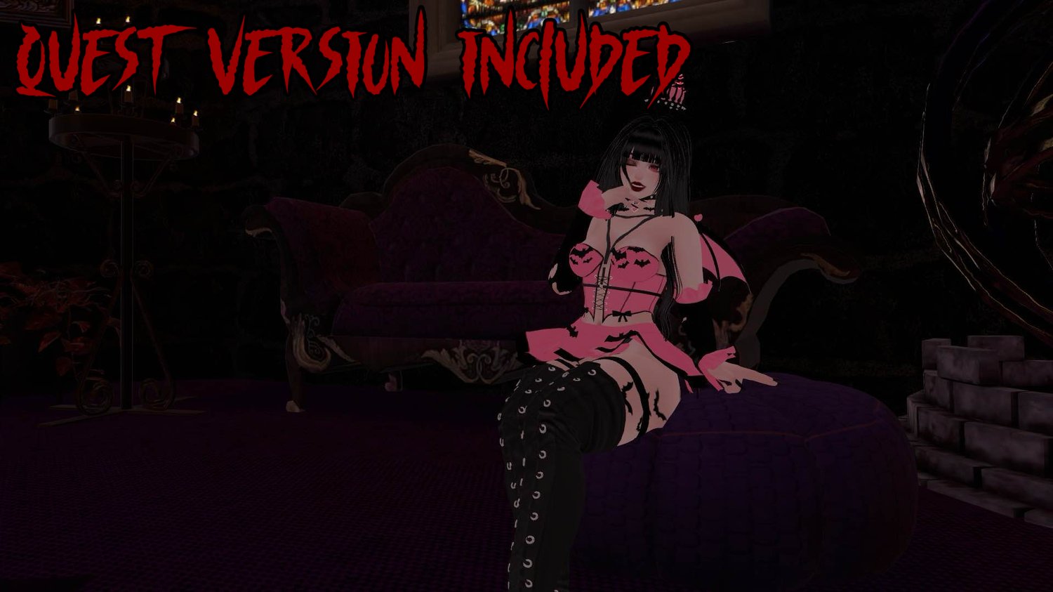 body - sanyacosmos | head - sivka. | hair 1 / hair 2 - saikura | bangs / boots - nessy! | outfit / sleeves - lolo3d | pasties (free in server) - kold. | panties - askamber | crown - teabeepea | choker - madxalice | harness - colorless | garters - vinuzhka | bows / wings / menu pose (nitro) - bellerina | tights - shaybie | headpat particles (discontinued) - notsache | bat hand particles - xxuebi | boop prefab - goteer | afk pose - wetcat | fake index - snoww | 3.0 logic base - lod | gogo locomotion - franada