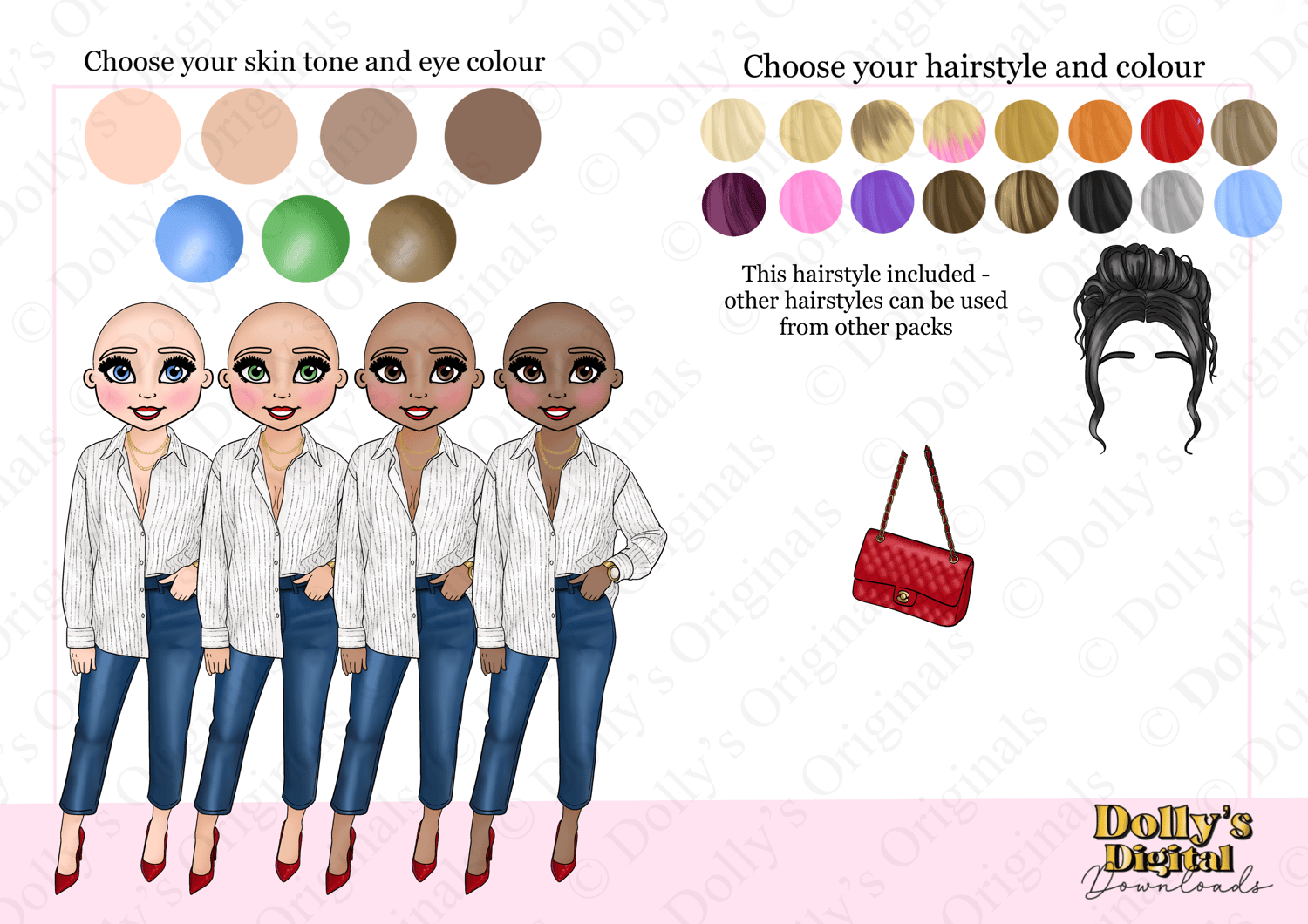 Instant digital download of our Paris Jeans Dolly Character Bundle PNG (29 PNG’s)