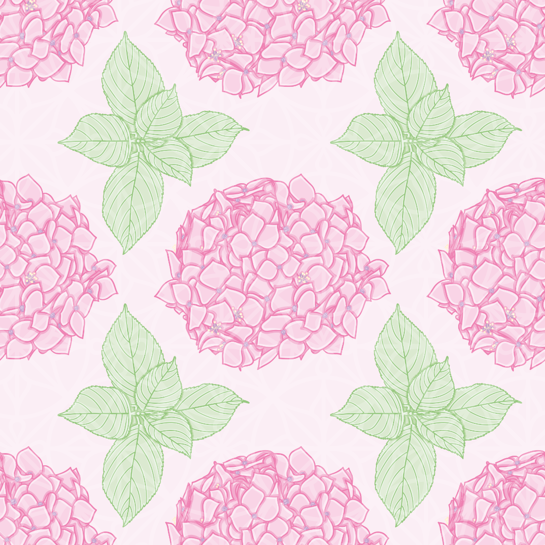 Cute pink Hortensia seamless vector pattern. Flowers and leaves illustration background.