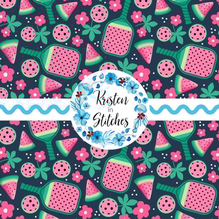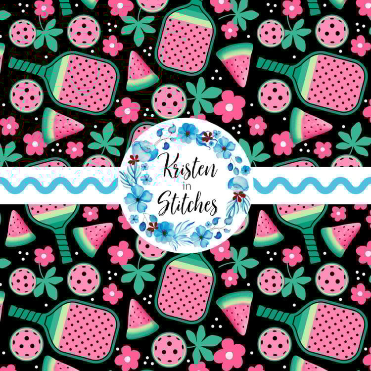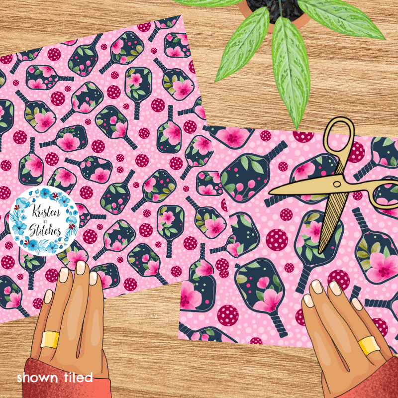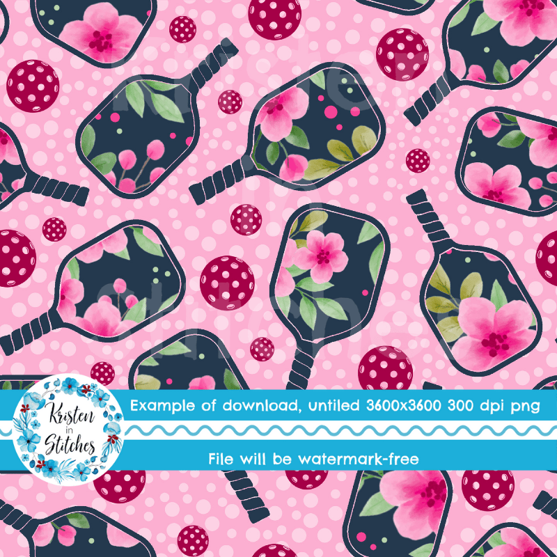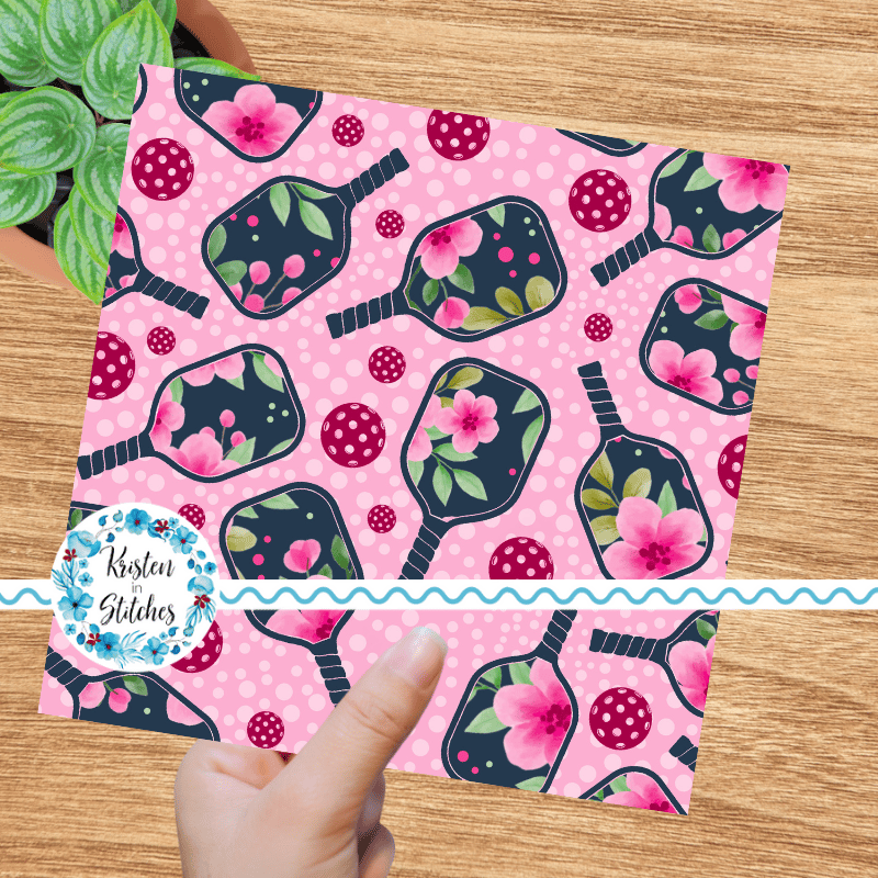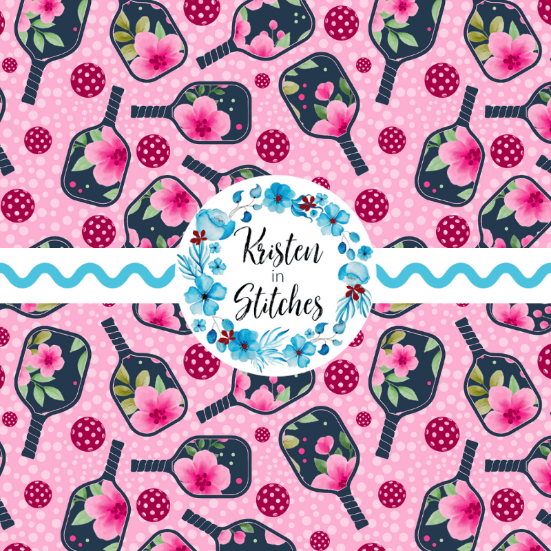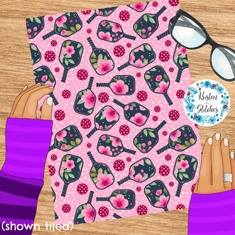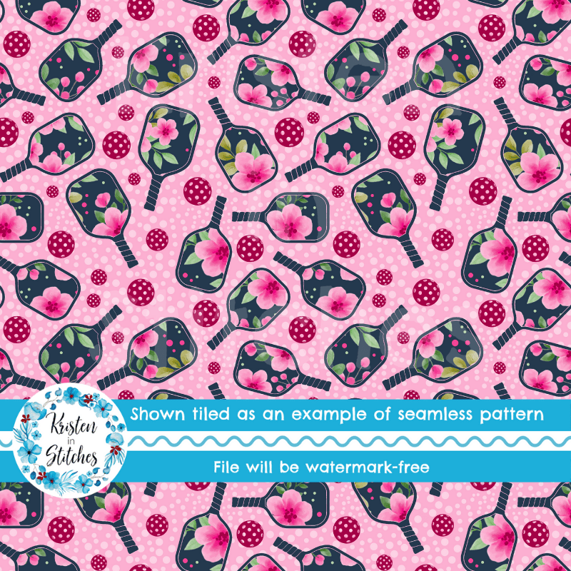 Pickleball Seamless Pattern, Paddles and Balls, Pink Floral