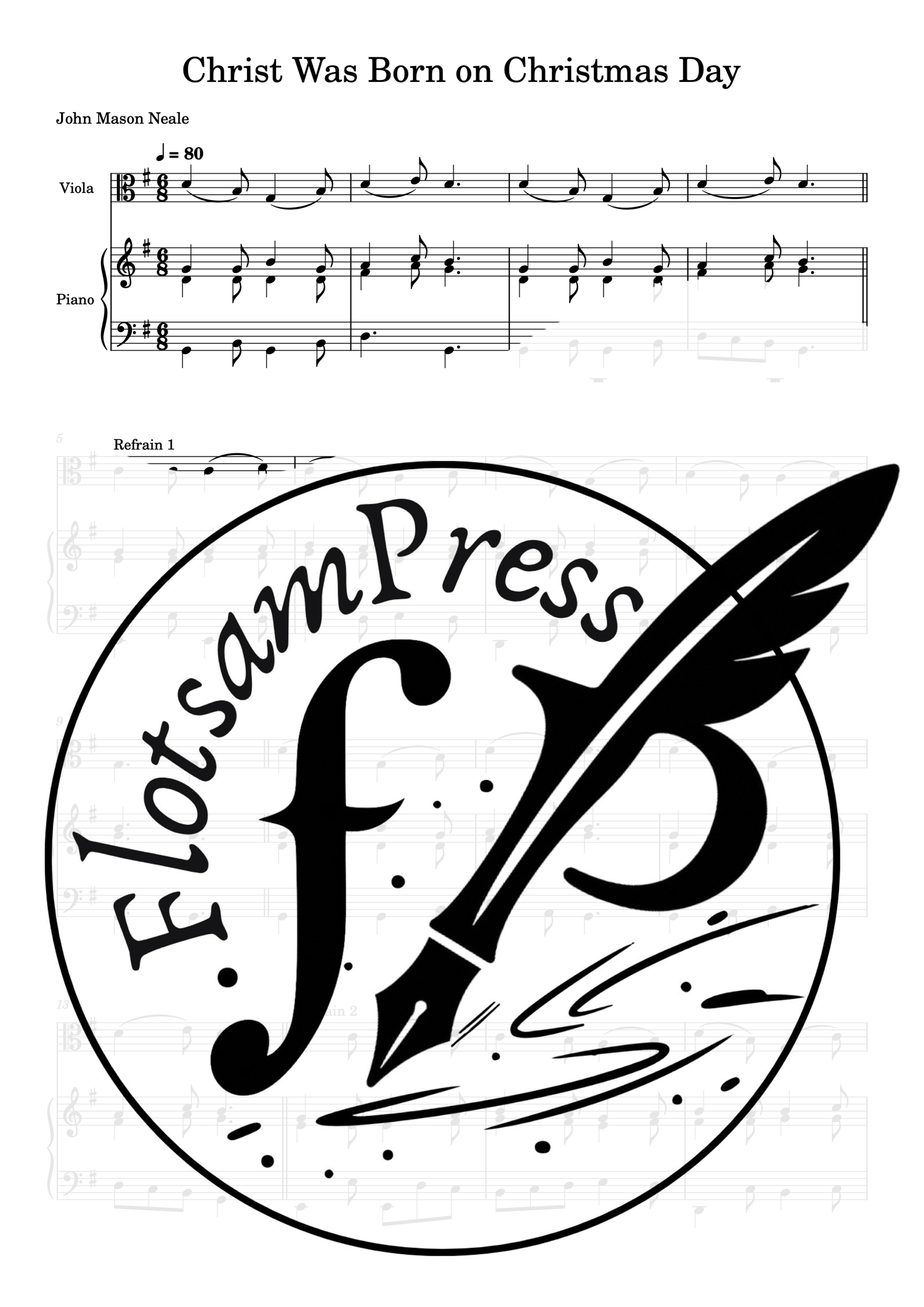 Christ Was Born on Christmas Day - Beginner/Easy Viola with Piano Accompaniment (PDF Download)