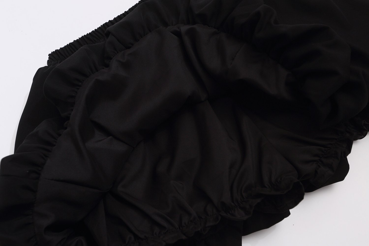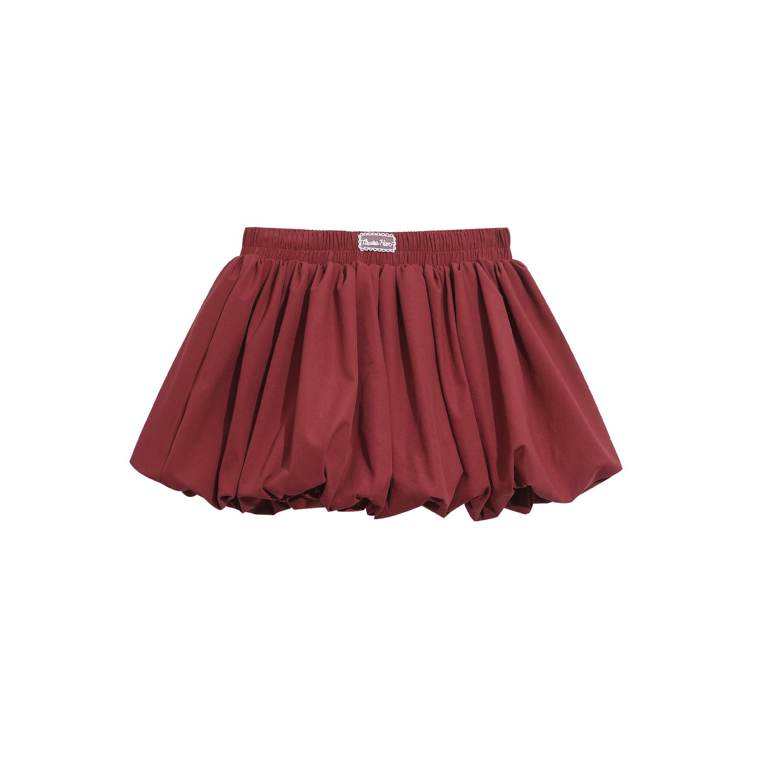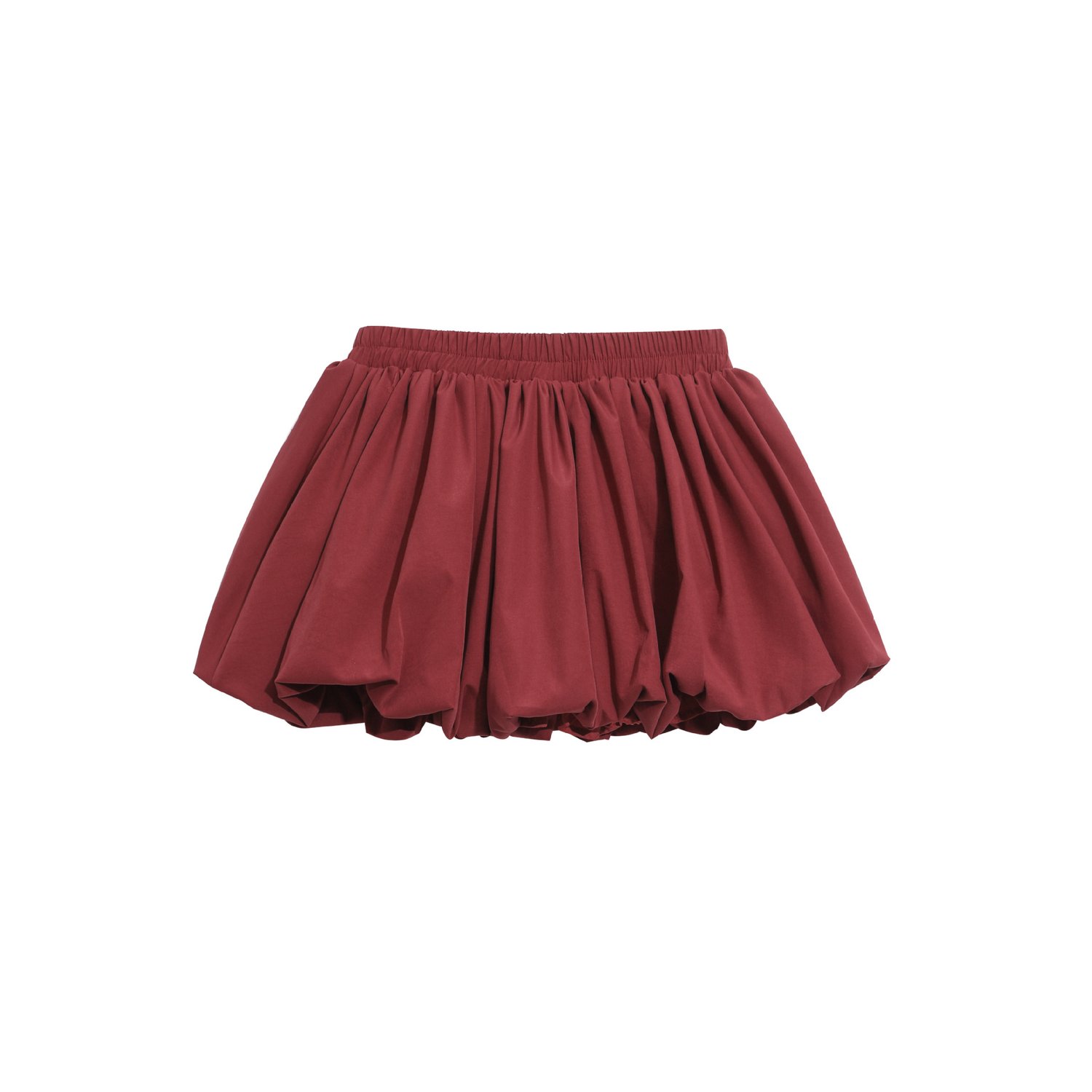 Designer French chic red elastic waist mini puffy bubble skort skirt