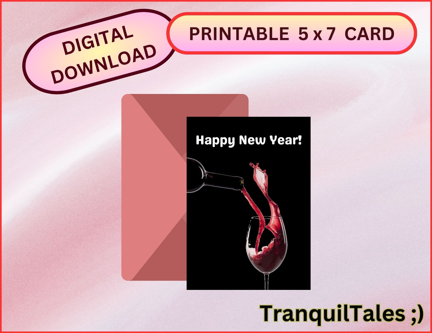 Happy New Year! Card - New Year Greeting with Red Wine - 5" x 7" inches - New Year card - PDF File
