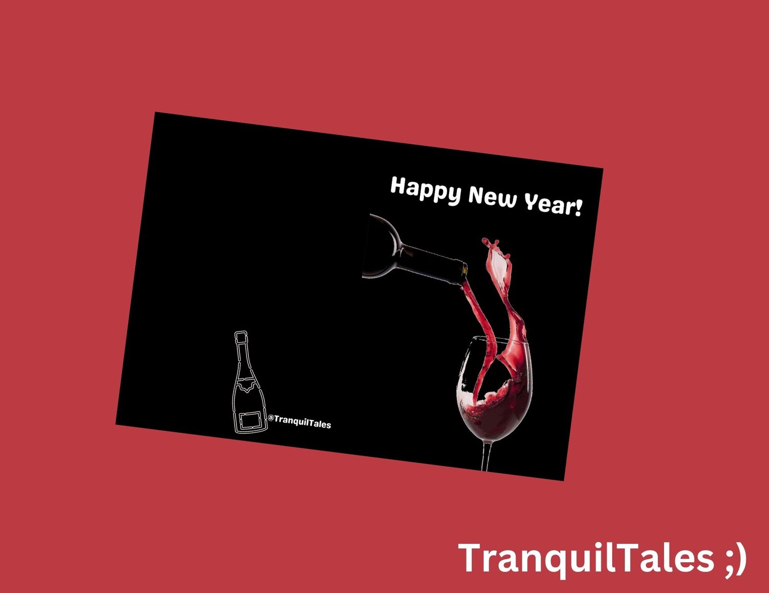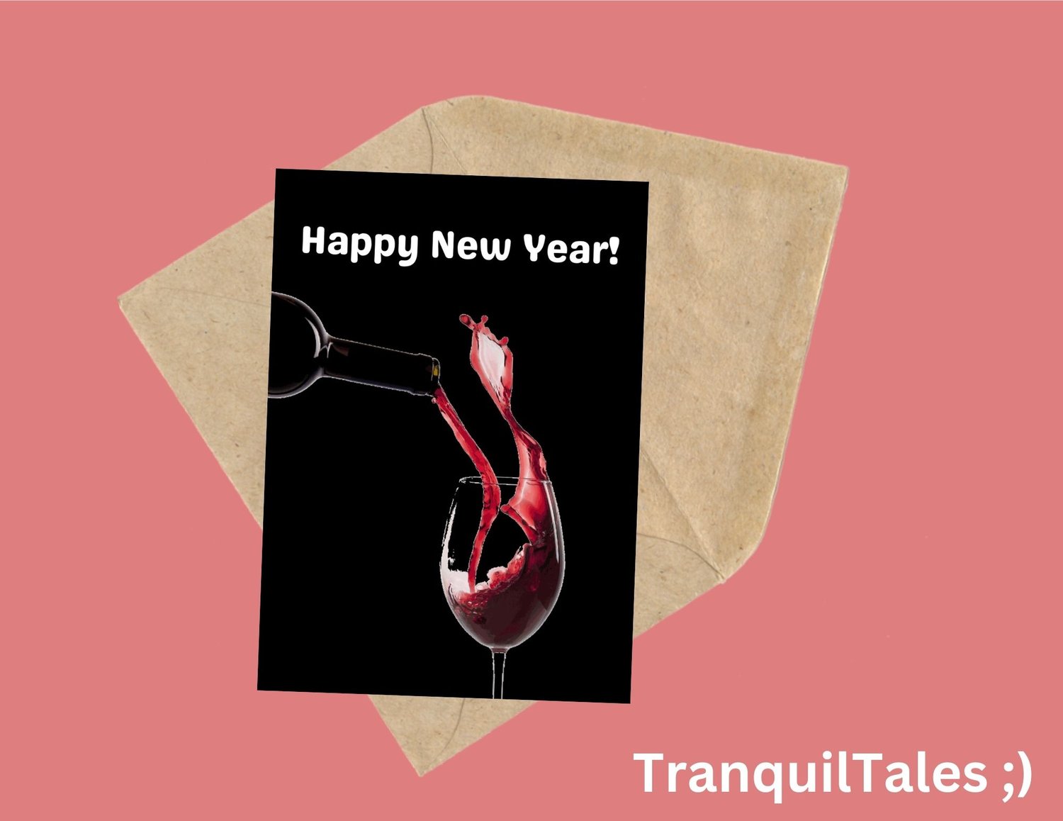 CARD TYPE – Happy New Year! Card - New Year Greeting Card with Red Wine