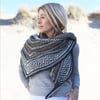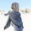 Maan is a large triangle shawl worked top-down, starting with a classic garter tab. It uses intricate techniques and stitches, which are all carefully explained. All the colorwork is done using the slip-stitch technique, so you will be handling only one strand at the time.
