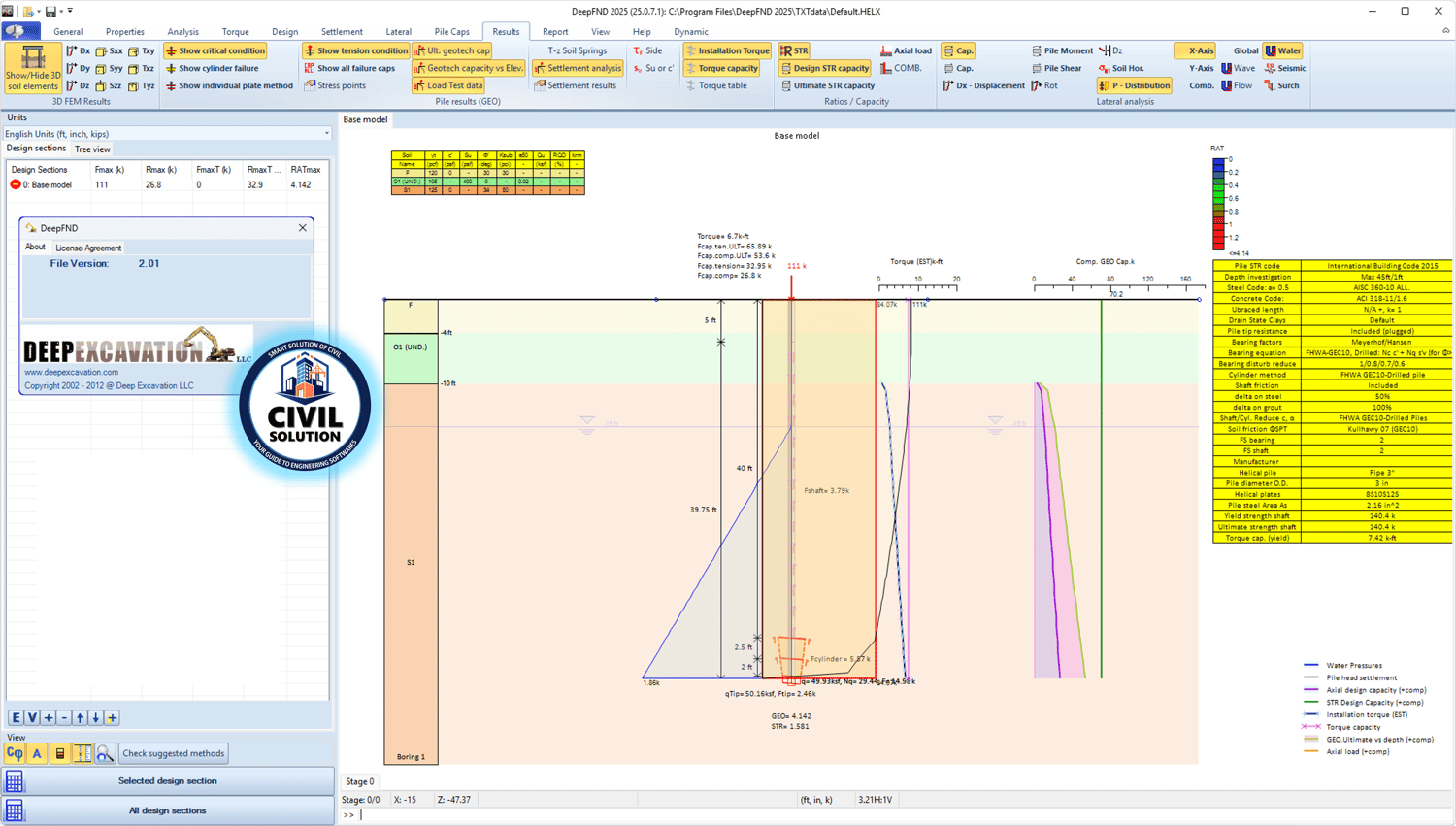 👷 Deep Excavation DeepFND 2025 v25.0.7.1 is an advanced, intuitive software solution designed for comprehensive deep foundation pile design, covering structural and geotechnical analysis under axial, lateral, and settlement considerations. It supports a wide range of pile types, including drilled shafts, driven piles, CFA piles, helical piles, micropiles, and stone columns, with integrated design checks compliant with international codes such as IBC, ACI, Eurocodes, and AS/NZS.