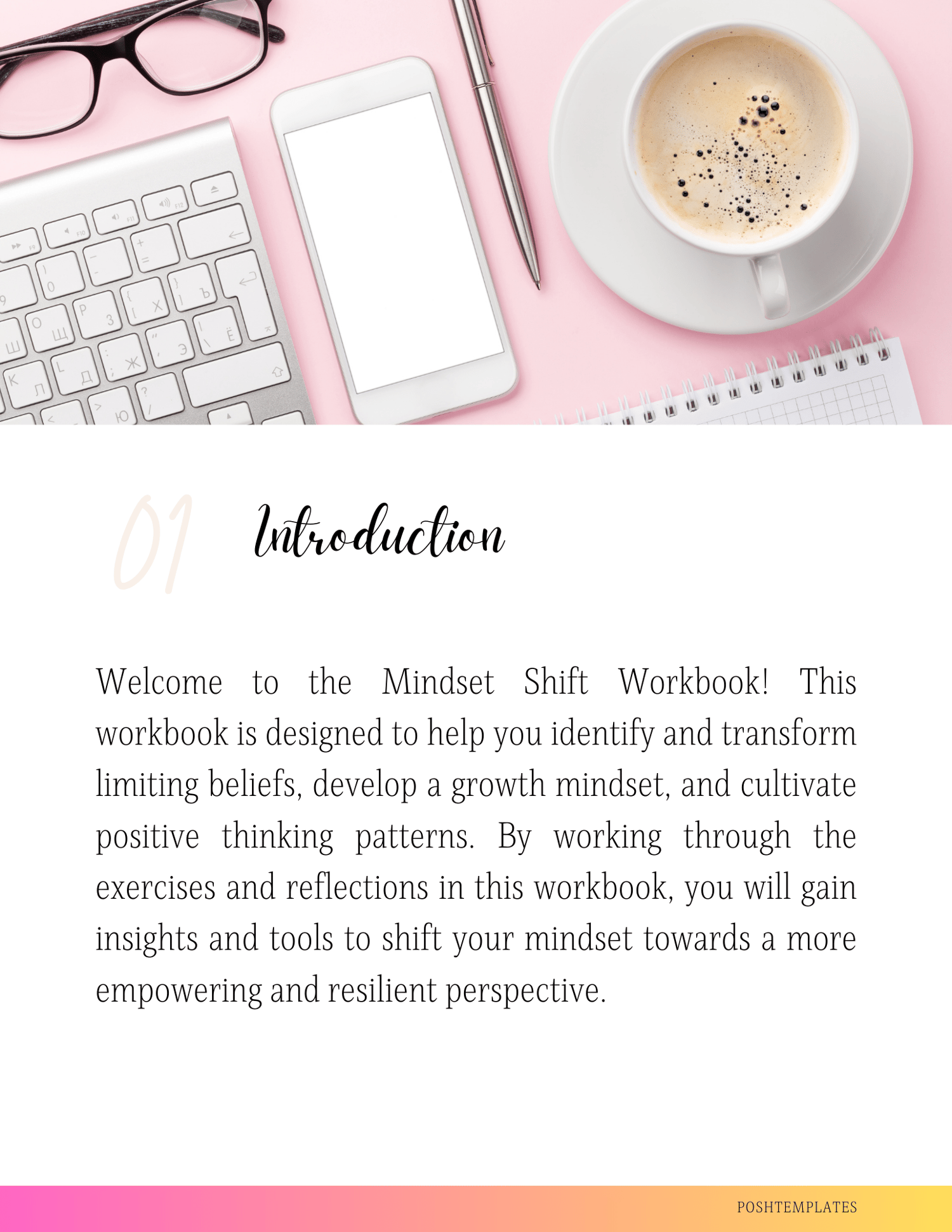 The Mindset Shift Workbook is a comprehensive guide designed to help you transform your thoughts and beliefs to foster personal growth and achieve success. This workbook provides practical exercises, insightful reflections, and powerful techniques to empower you to shift your mindset and overcome self-limiting beliefs.