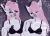 base mesh, head mesh, tail and ears mesh, hair mesh, bra and undies, hair and tail texture, eye texture, psd