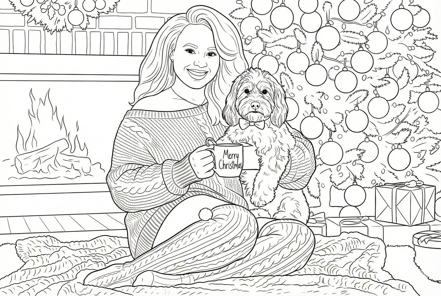 Turn your photos into a magical, hand-refined Christmas or Holiday-themed coloring page!