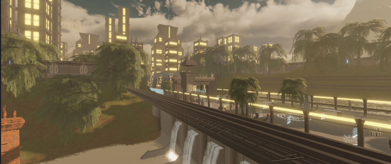 City of Paytora is a high-fidelity Roblox roleplay experience set in a sprawling dystopian metropolis ruled by the AegisCorp corporation. Players spawn into a richly detailed urban environment complete with towering skyscrapers, cascading waterfalls, elevated rail lines, and lush overgrown greenery — all rendered with advanced lighting and atmospheric effects. Choose your allegiance: blend in as a civilian, join AegisCorp's military ranks, enforce the law as Military Police, or deploy as an elite Commando. With a jetpack marketplace, dynamic team-based encounters, and a fully custom interface, Paytora delivers an immersive urban battlefield unlike anything else on the platform.