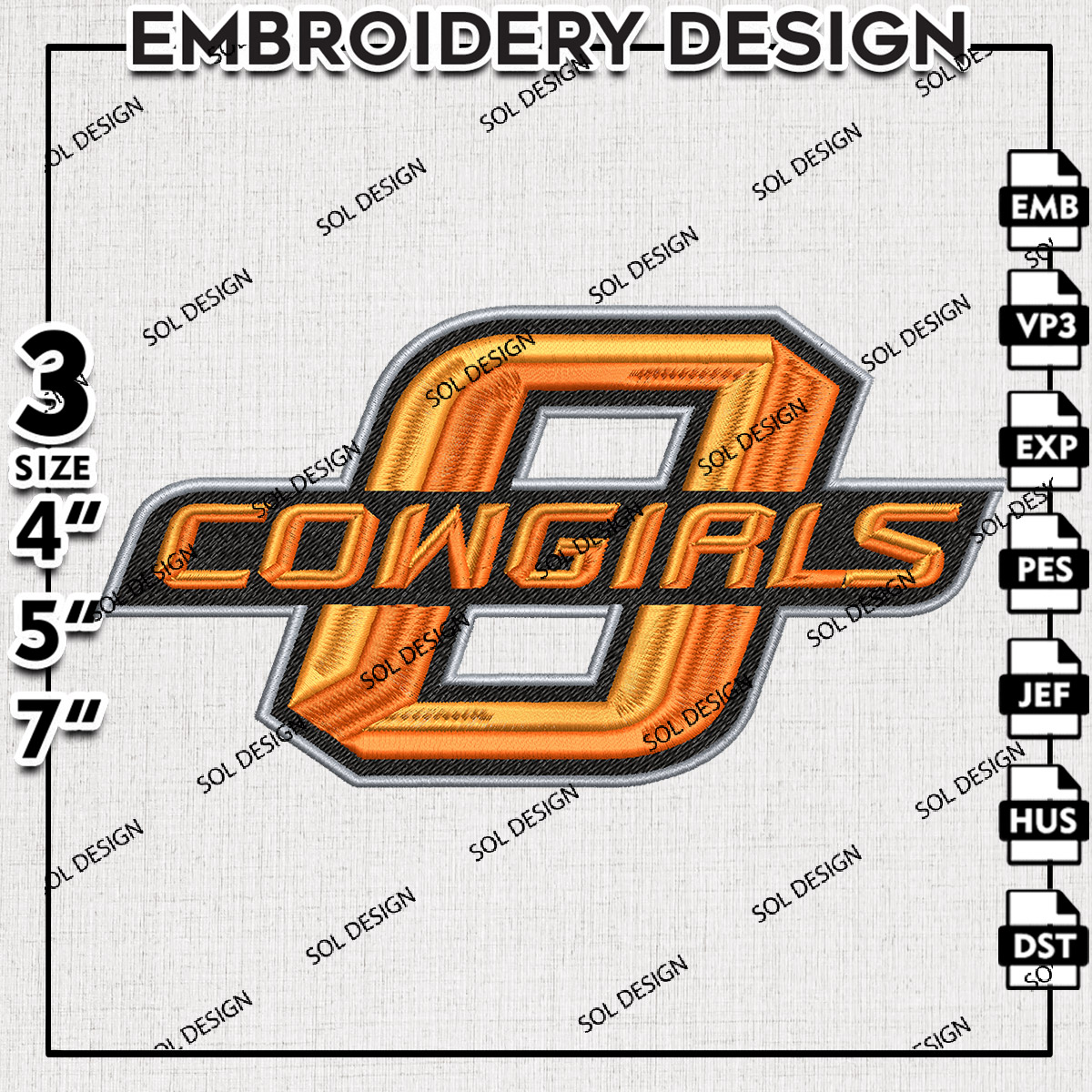 NCAA Oklahoma Cowgirls College Football Team Logo Embroidery Designs, NCAA Oklahoma State Cowboys Machine Embroidery Files, NCAA Logo embroidery designs, NCAA Oklahoma State Logo, Digital Download