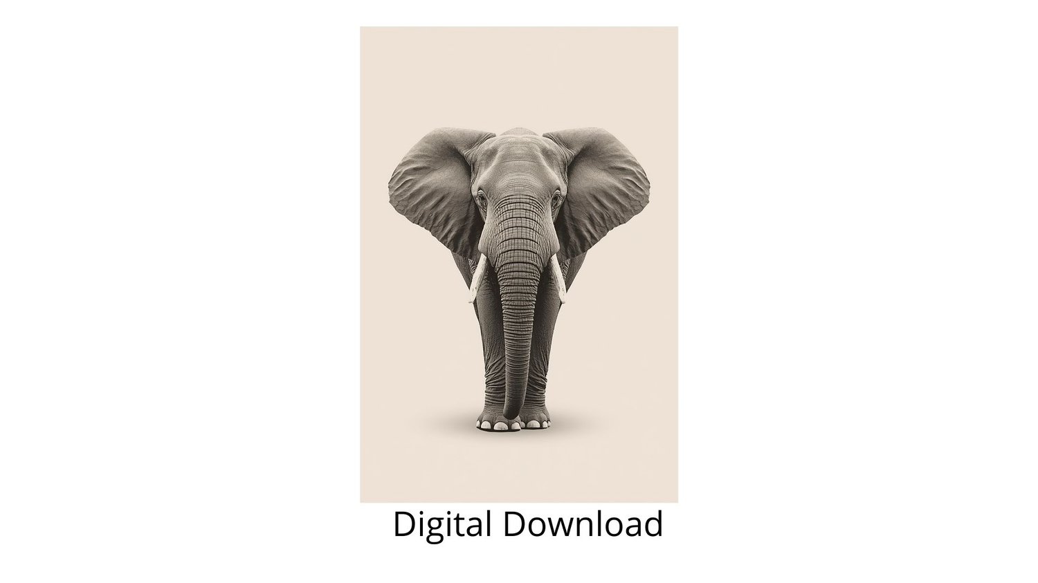 Calm African elephant wall art printable in soft neutral tones. Elegant wildlife decor.