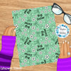 Puppy dog prints, bows and flowers in mint green.