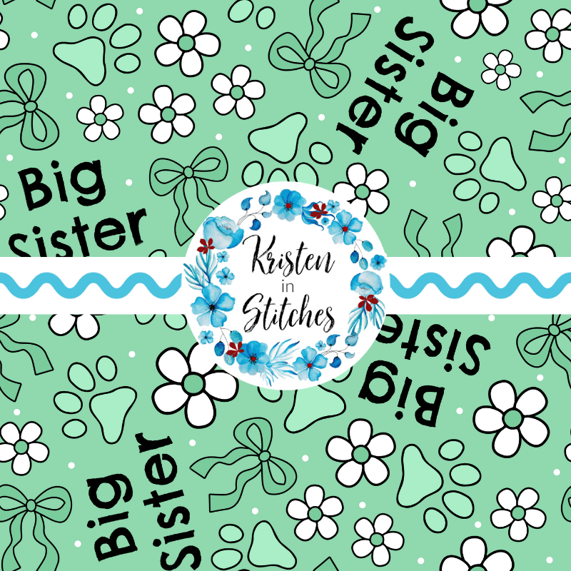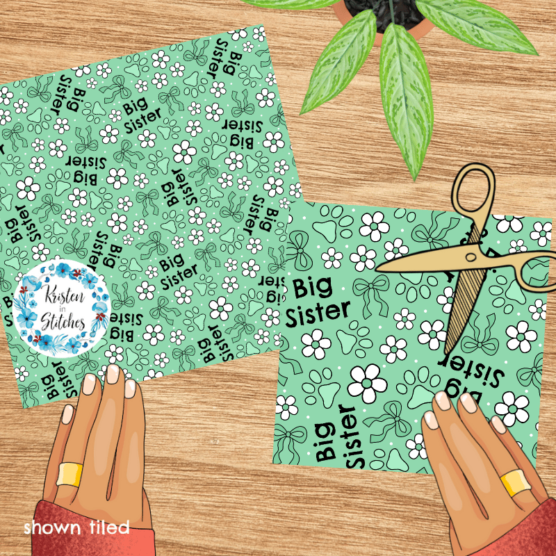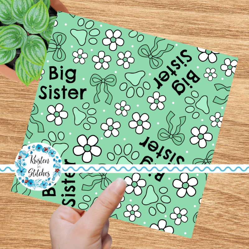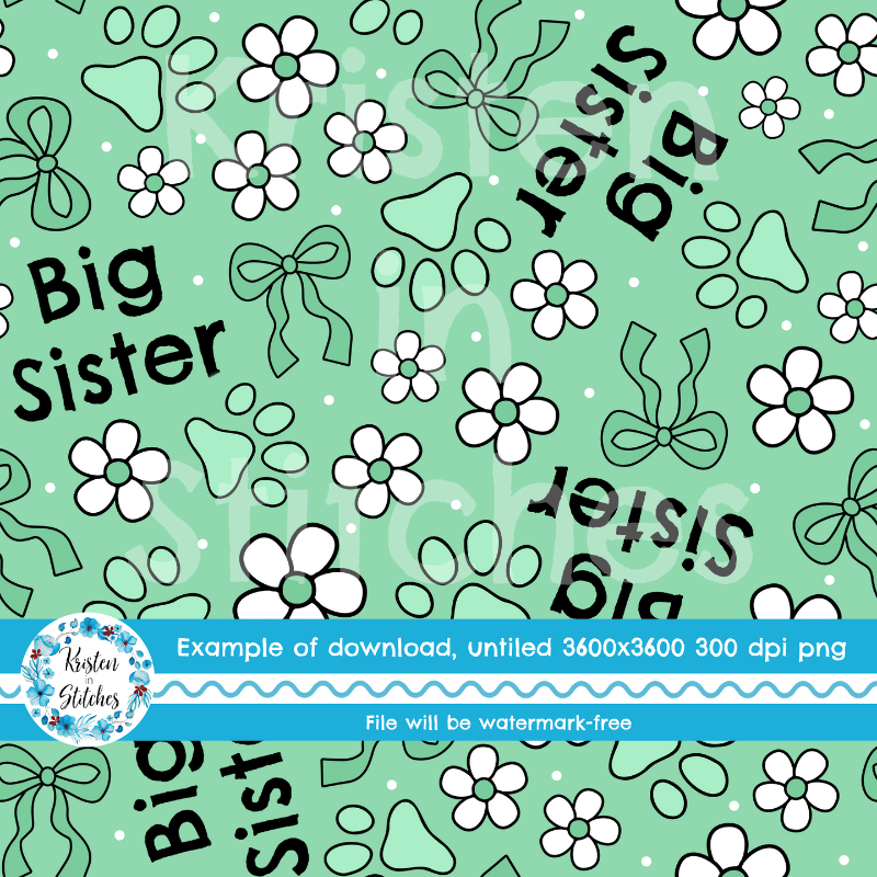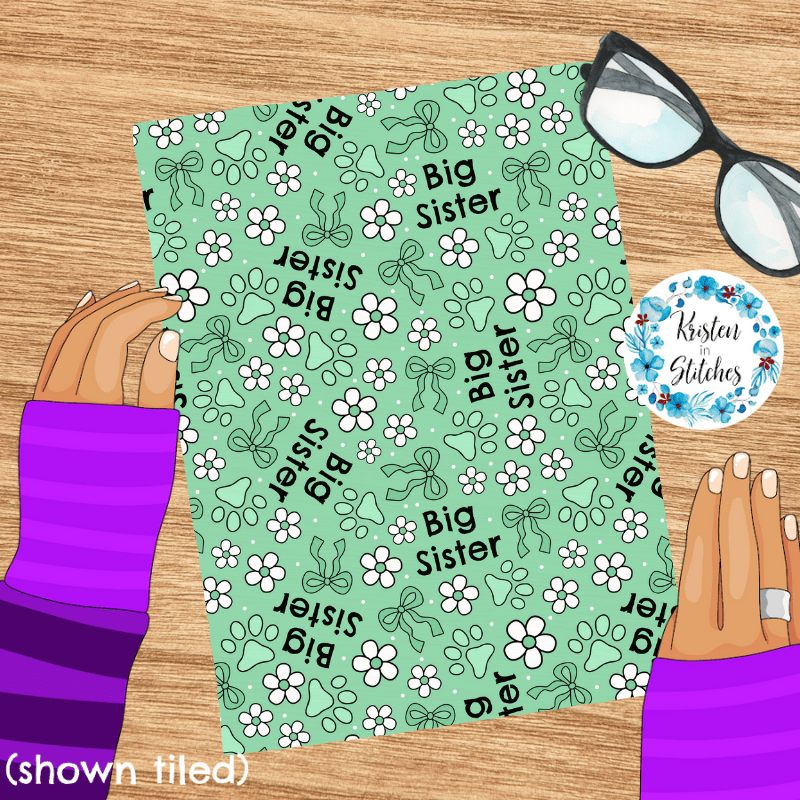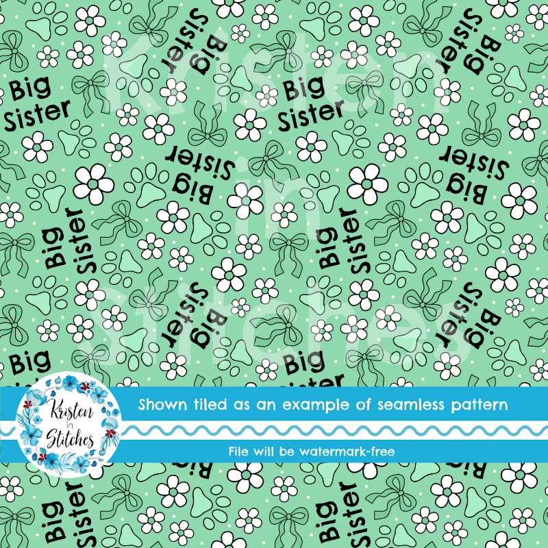 Big Sister Puppy Dog Paw Prints Seamless Pattern
