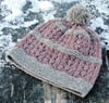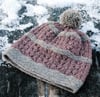 Wild Sage Hat is the final installment in a set of three matching accessories. Designed to complement the fingerless mitts and socks in the set, the hat features alternating sections of lace and garter stitch. The pattern also includes instructions for making a full-lace version of the hat. The cushy garter-stitch brim will keep your ears cozy and warm. Worked in a sport-weight yarn in two colors, this hat is a quick and engaging knit.The hat is available in two sizes: Small (55 cm / 21¾“) and Large (60 cm / 23¾”). A photo tutorial for making a fluffy pom pom that finishes the look is included in the pattern.