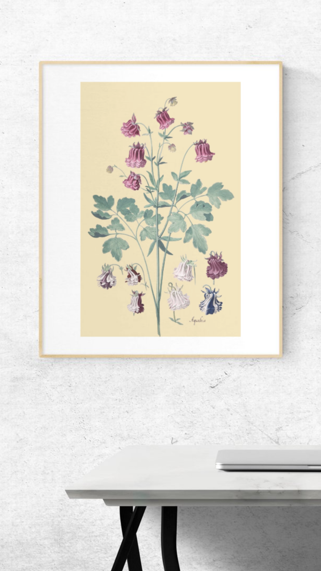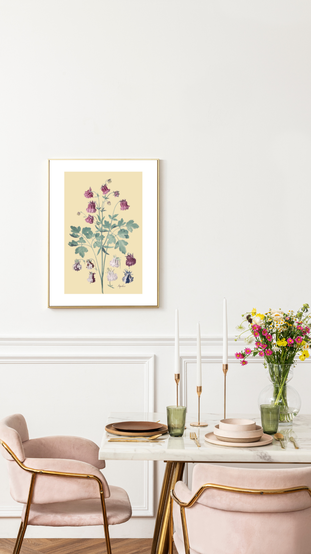Pressed Flower #3 – Aquilegia Wall Art | Botanical Triptych Digital Download | JPG & PDF + Guide