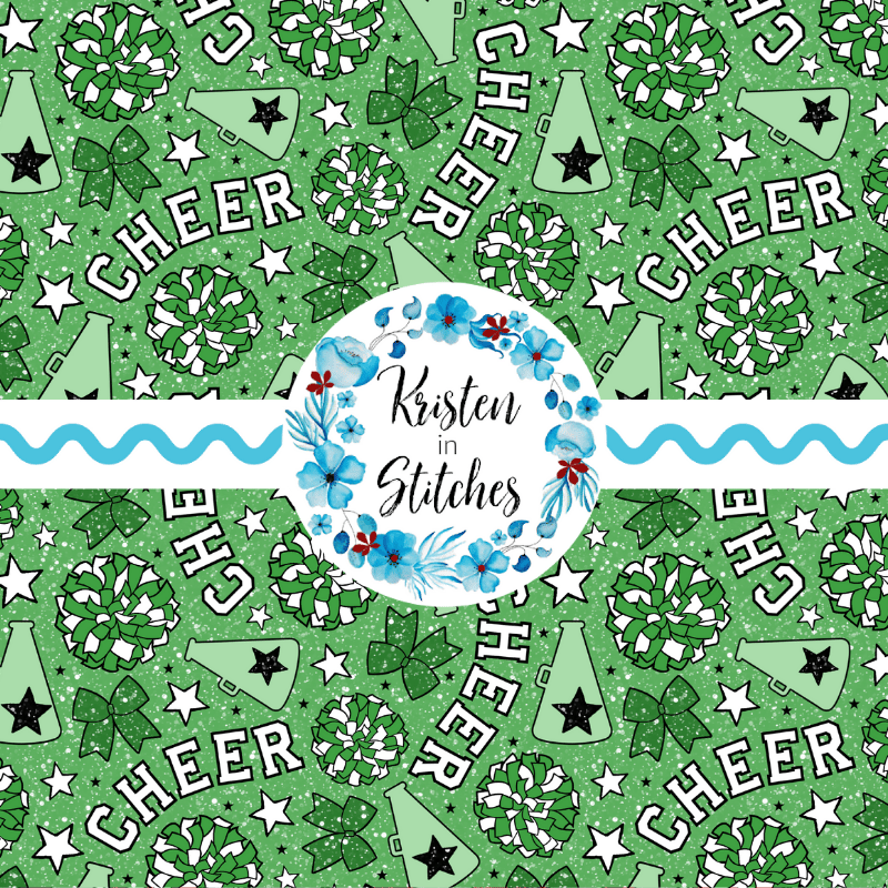 Cheer team pom poms, stars, bows and megaphone cheerleader cones in green.