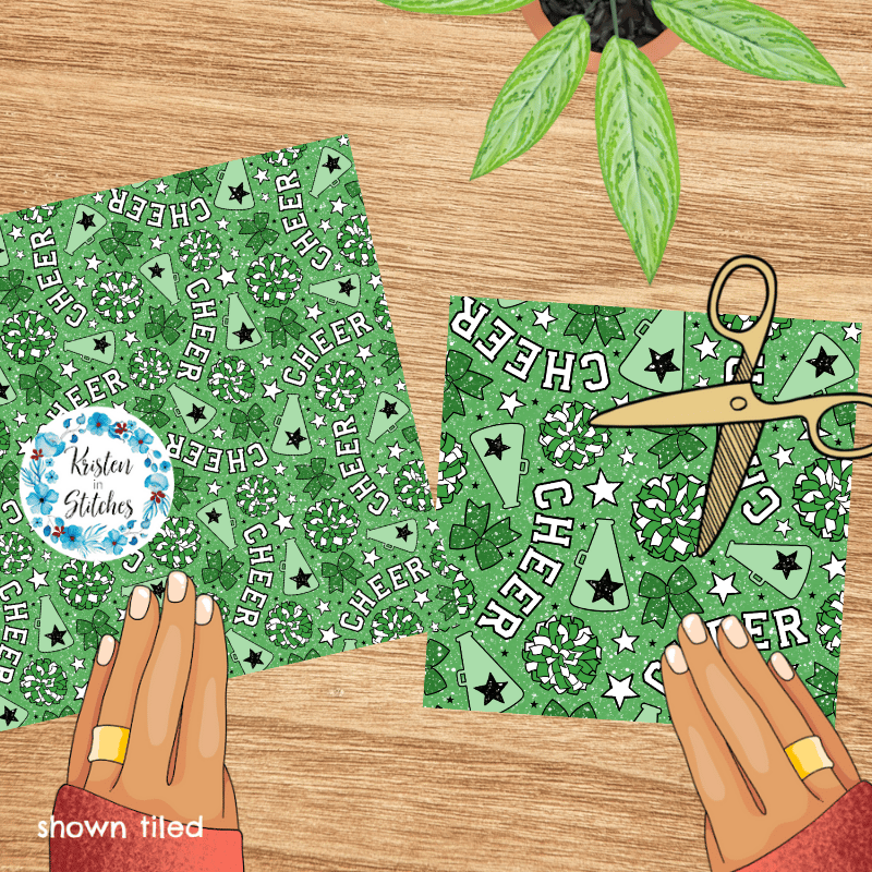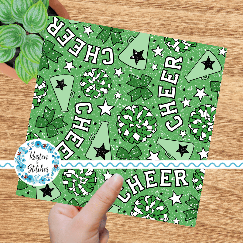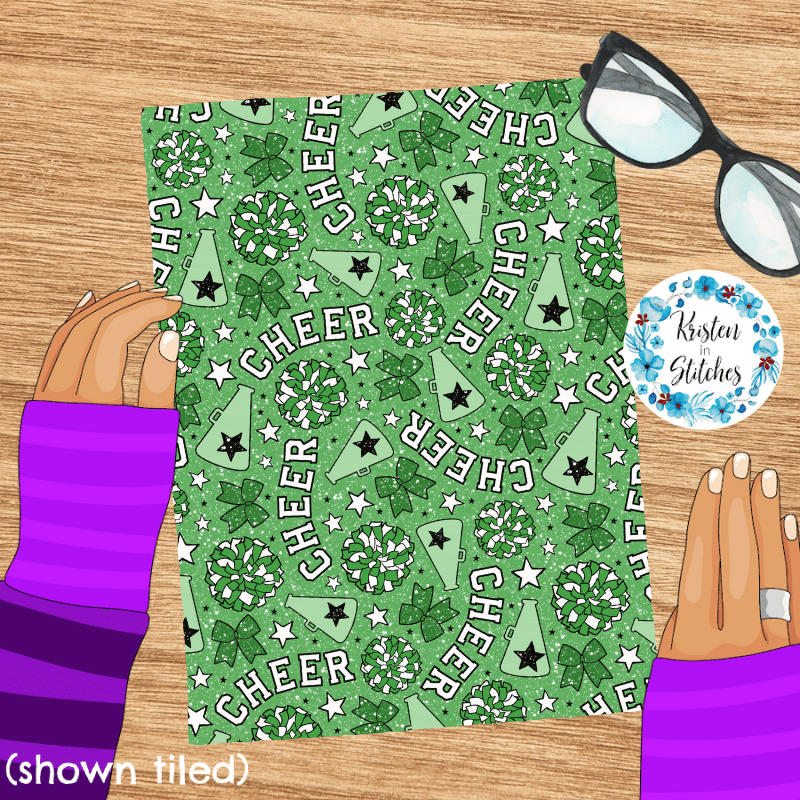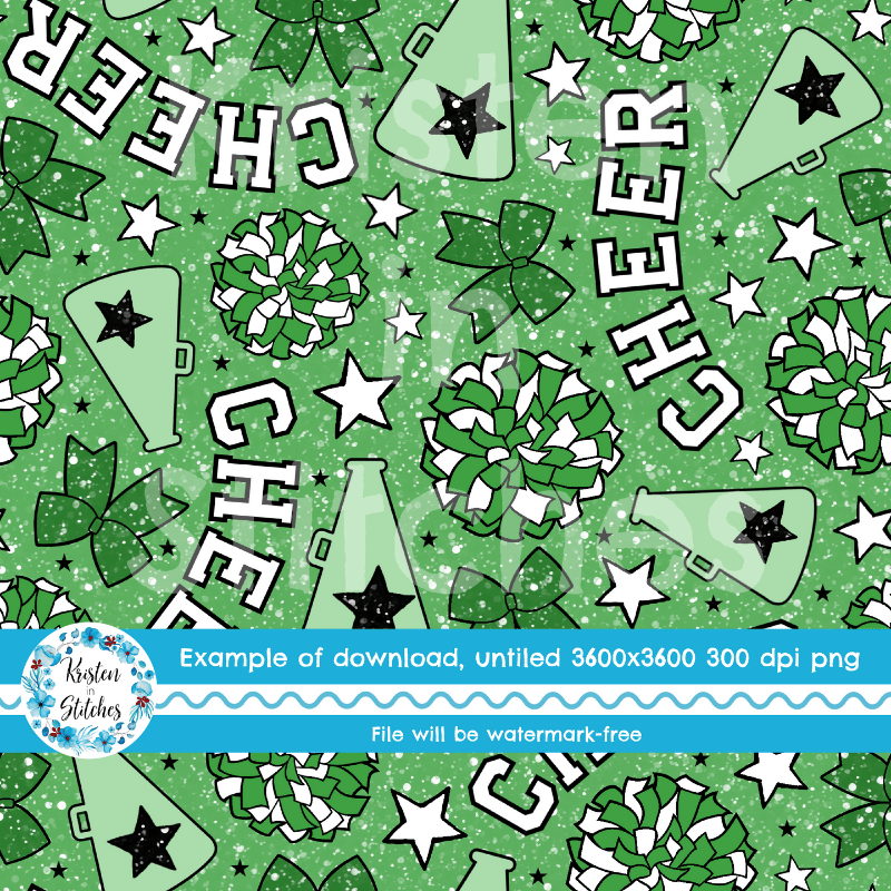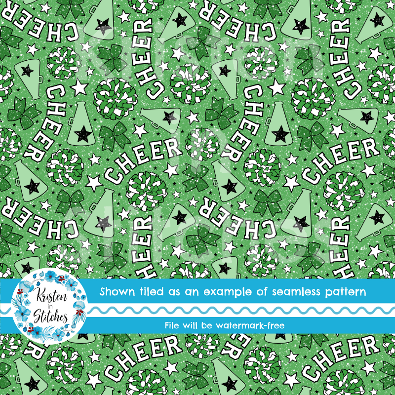 Green Cheer Bows and Pom Poms Cheerleader Seamless Pattern