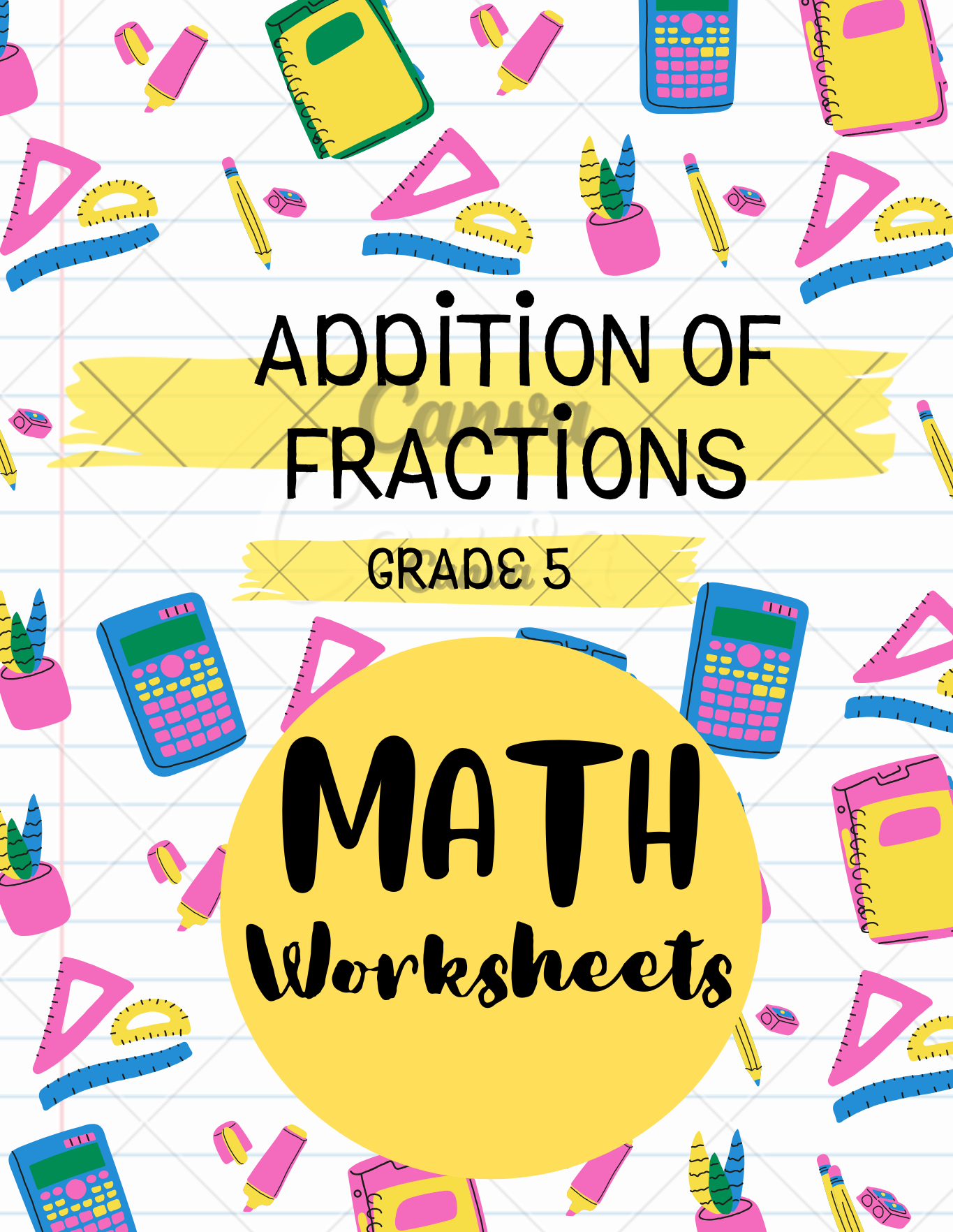 Download free Grade 5 Addition of Fractions worksheets to help students practice adding like and unlike fractions with step-by-step solutions. Perfect for practice and assessments!