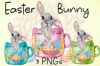 Easter bunny mugs. Super cute bunny sitting inside an Easter decorated ceramic mug in pink, blue or neutral green.