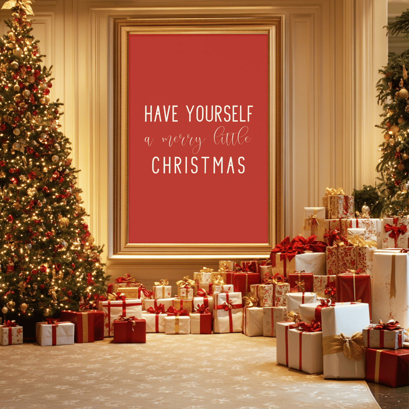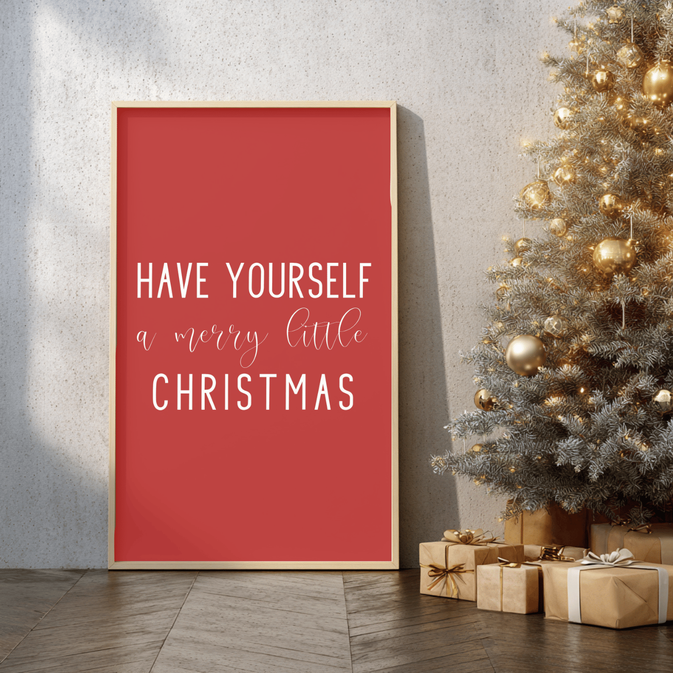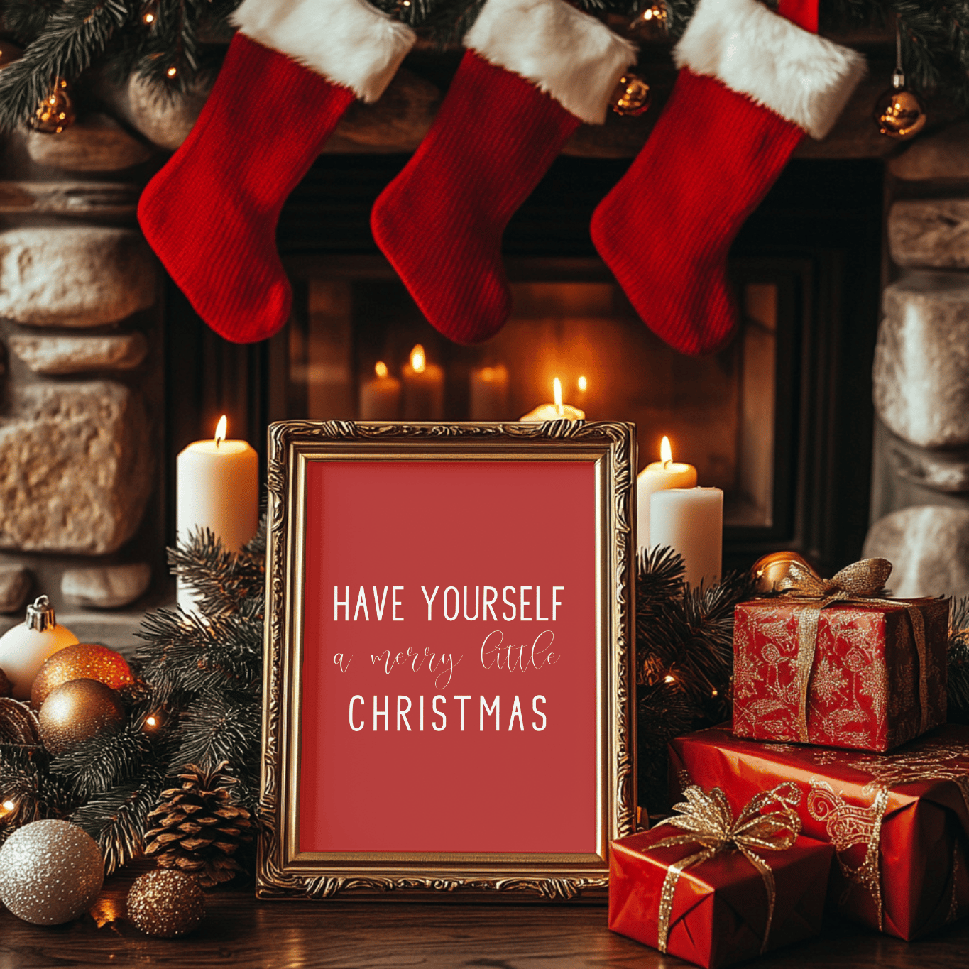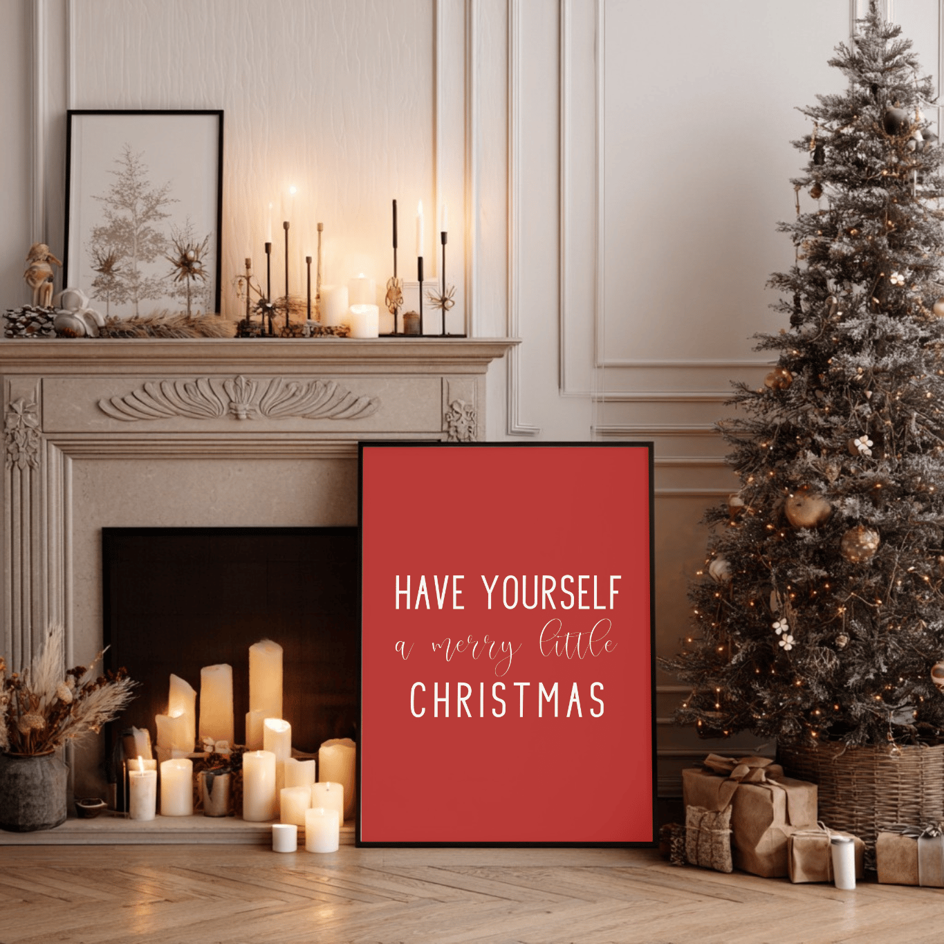 Add timeless charm to your home this holiday season with this “Have Yourself a Merry Little Christmas” printable wall art. Featuring elegant white lettering on a festive red background, this design brings warmth and cheer to any space — perfect for your living room, entryway, or mantel.